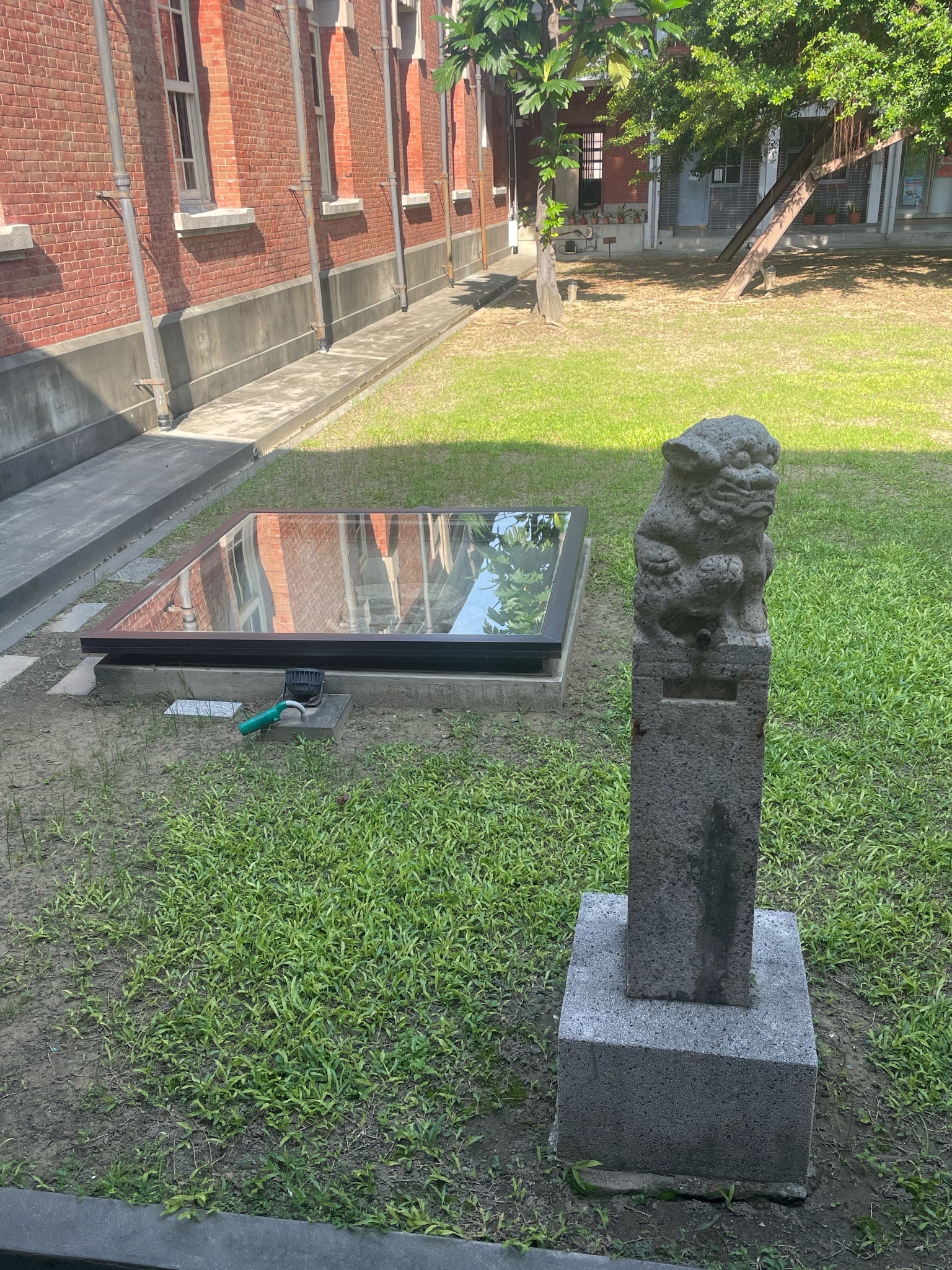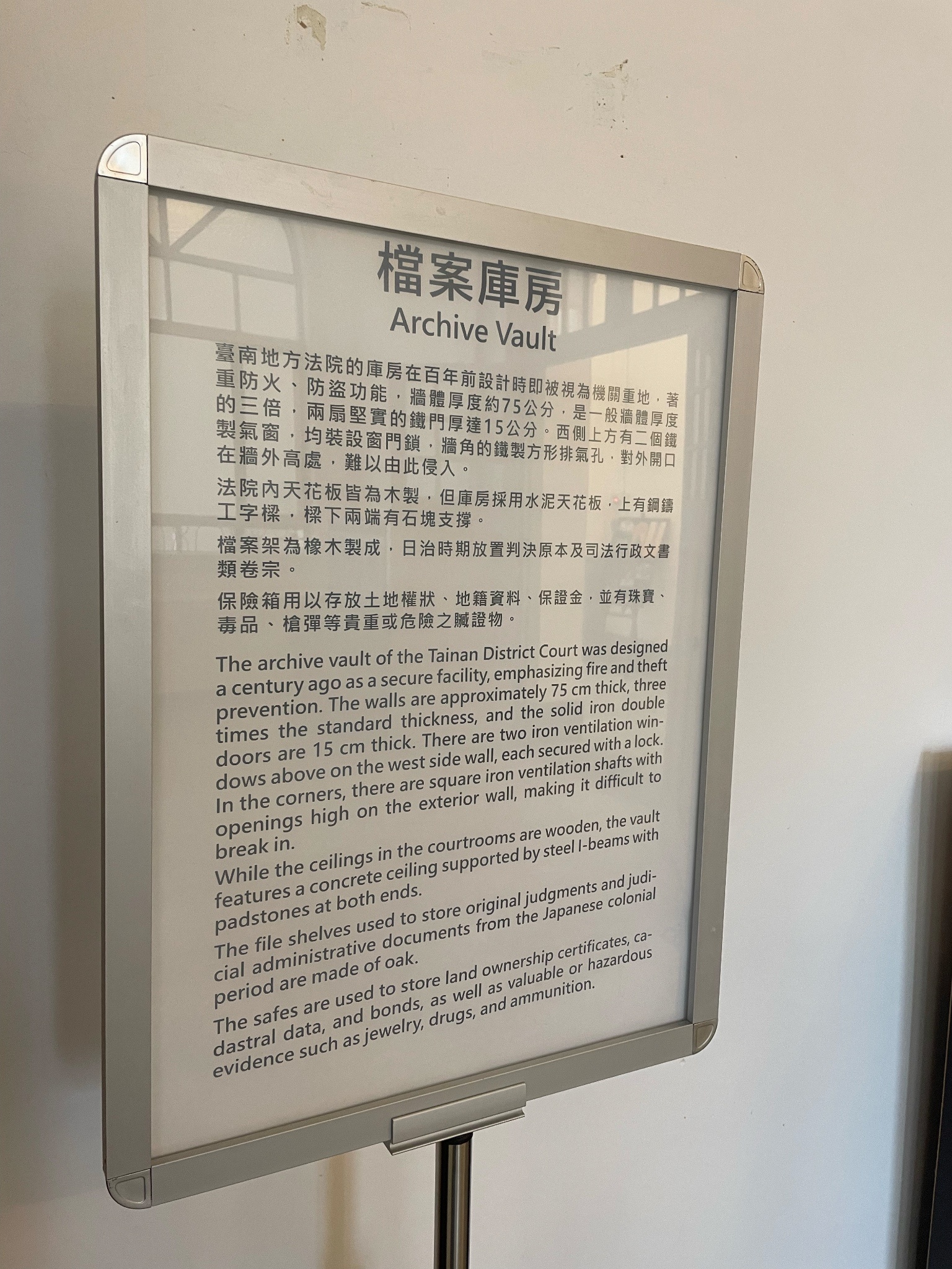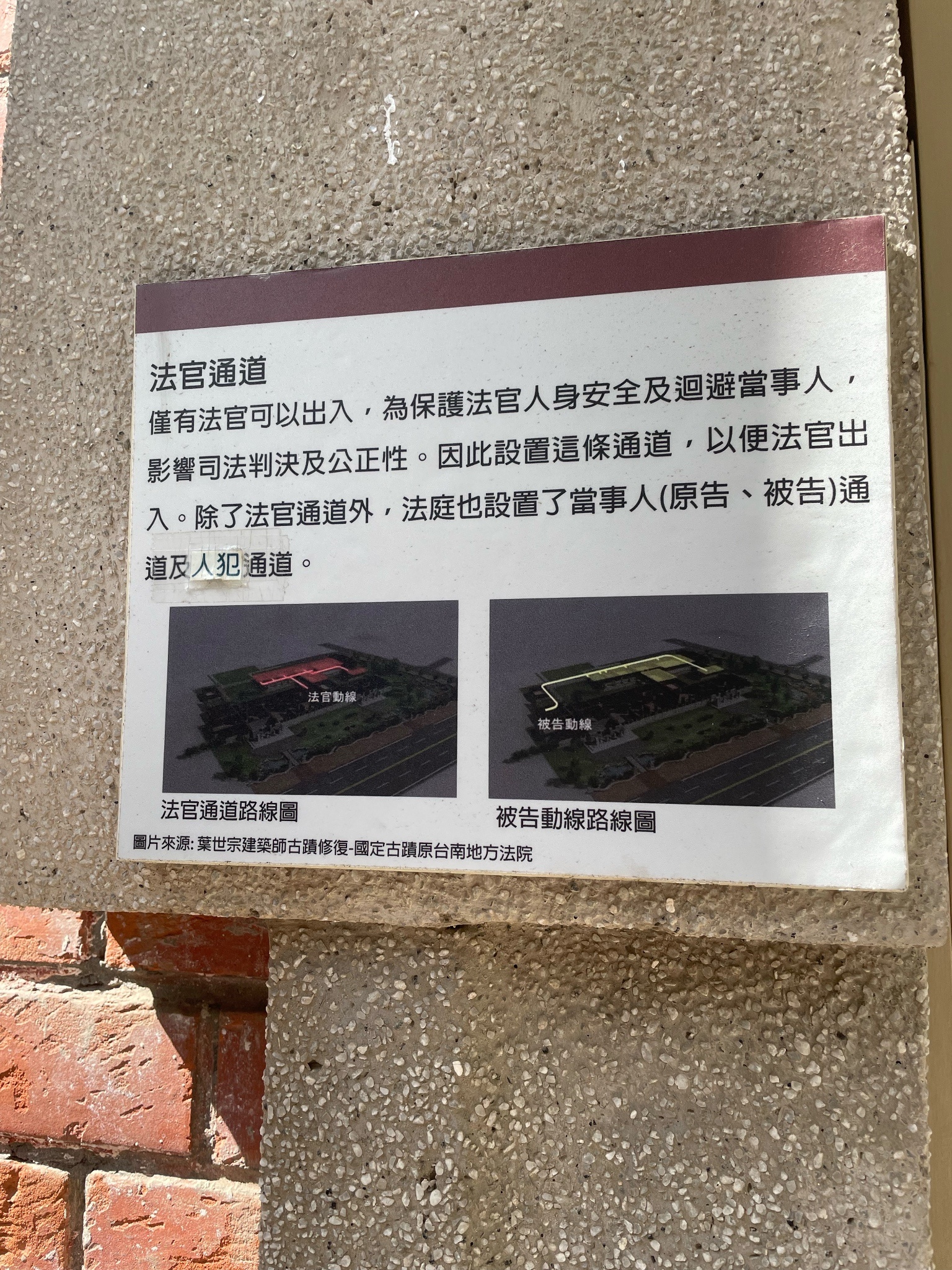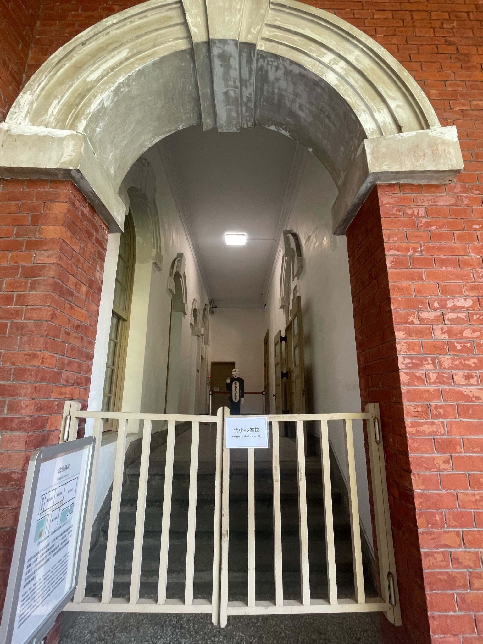還有因為待太久,被太多志工認得,還被拉來拉去告知一些建築物小知識,好比法官專用通道的動線,以及庫房的通風口設計(一上一下空心夾層,方便散熱的空心夾層)。以及有些窗戶玻璃是日治時期留下來的,所以看到比較不透明、波光粼粼的,就是老玻璃。
