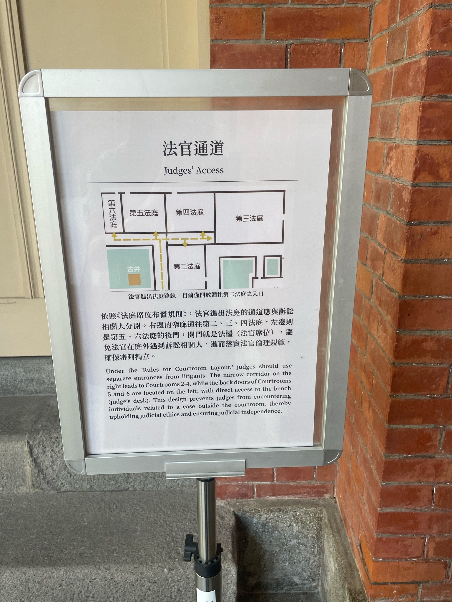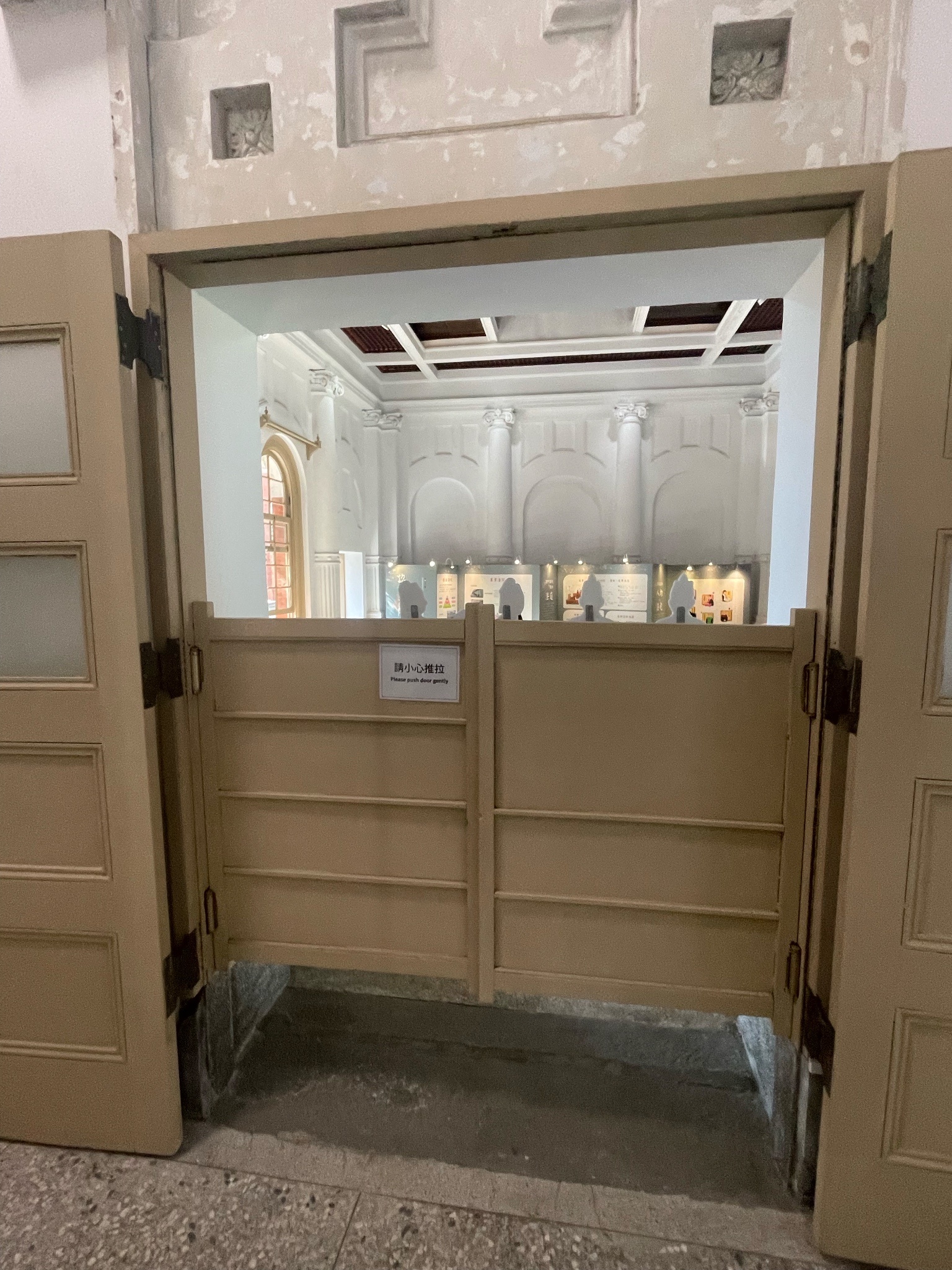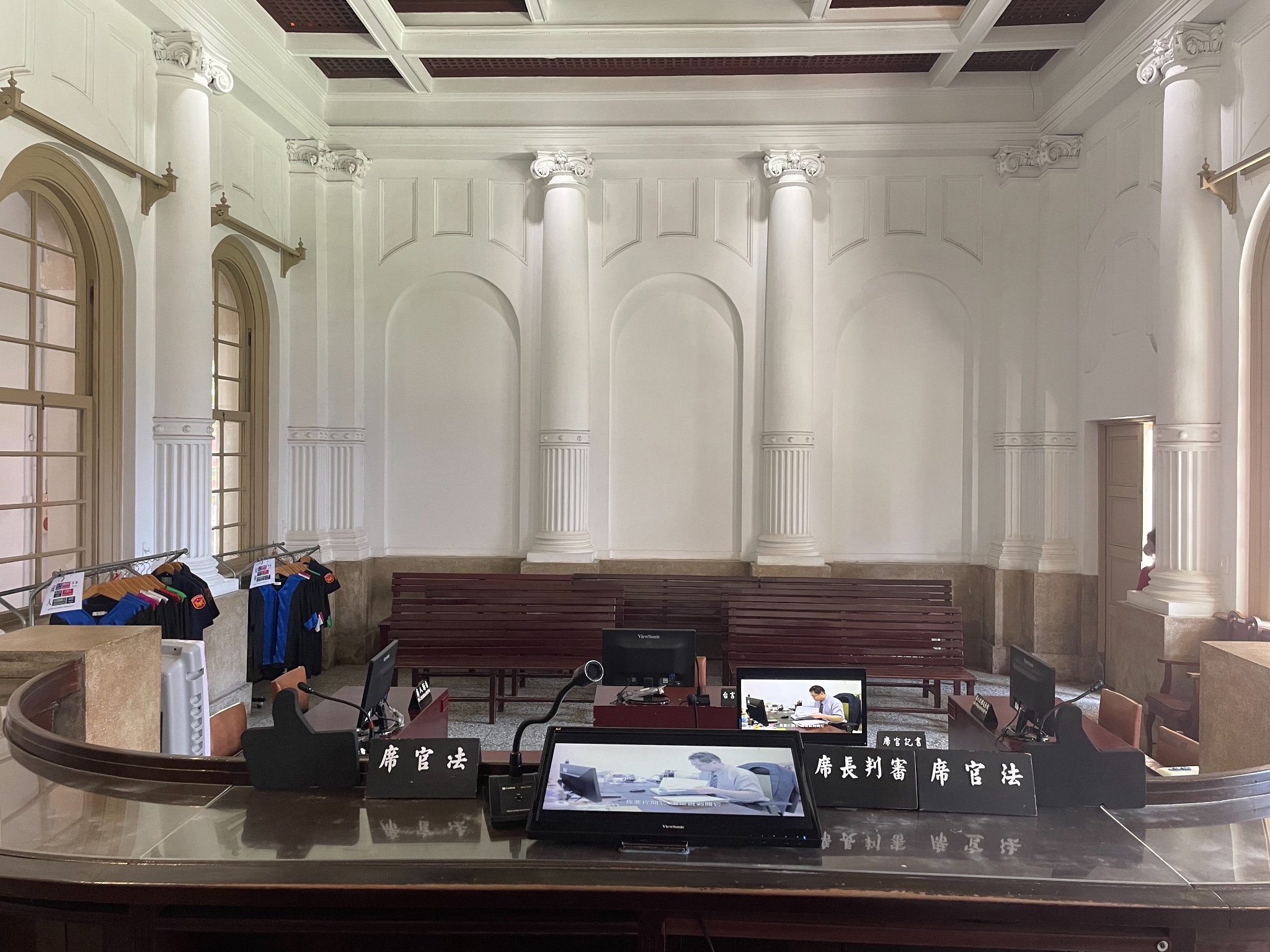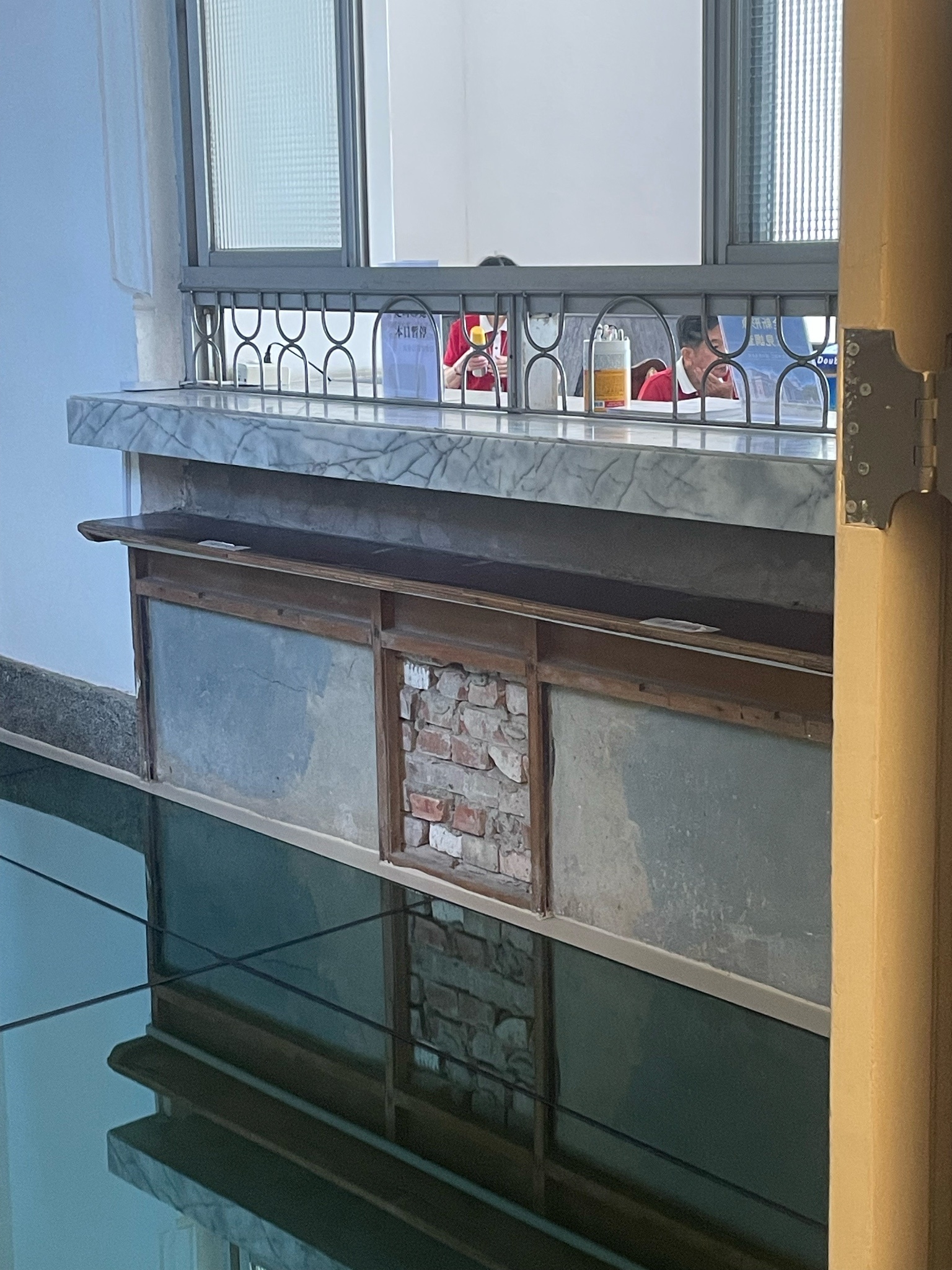 還有因為待太久,被太多志工認得,還被拉來拉去告知一些建築物小知識,好比法官專用通道的動線,以及庫房的通風口設計(一上一下空心夾層,方便散熱的空心夾層)。以及有些窗戶玻璃是日治時期留下來的,所以看到比較不透明、波光粼粼的,就是老玻璃。