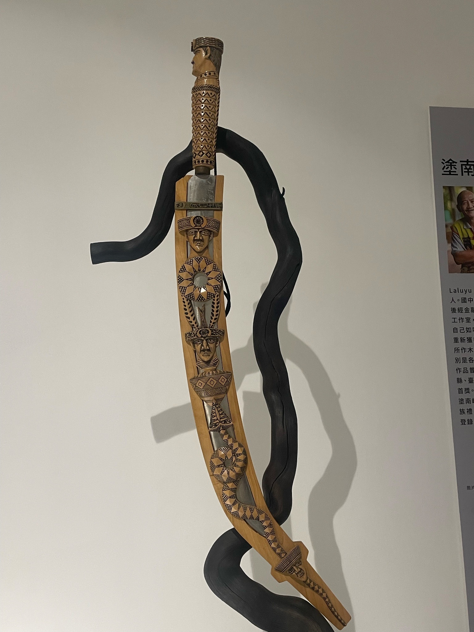 然後台南是真的很愛掃QR碼播語音導覽的模式嗎?其實介紹地很詳細,但介紹人的口條,就,挺一般人的,贅詞沒有被剪掉,可能我太習慣一些專門請配音員唸導覽說明,一時間不適應,但內容非常充實,也是我時間小偷的緣由。而且展覽中,作品作者中「人間國寶」的密度過高了啦!作品的精細度(特別是那個木雕)也是放在故宮也很正常的地步,我蠻喜歡策展人的概念: