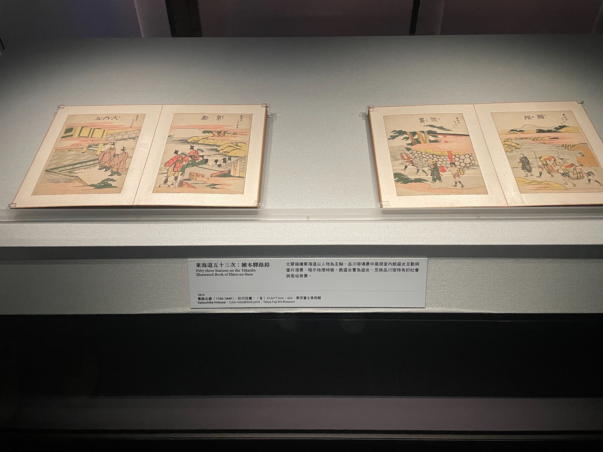 有借導覽機,但我覺得介紹地太少,還有看板或語音與現場內容衝突的問題。像是,歌川廣重《東海道五十三次》,看板說是這次展覽完整展出「永保堂版」跟「隸書版」,但現場明明只有「永保堂版」,感覺是輪流抽換(這次展品會抽換,所以不同時期看到的不一樣),但說明文字寫得很像同時展出。