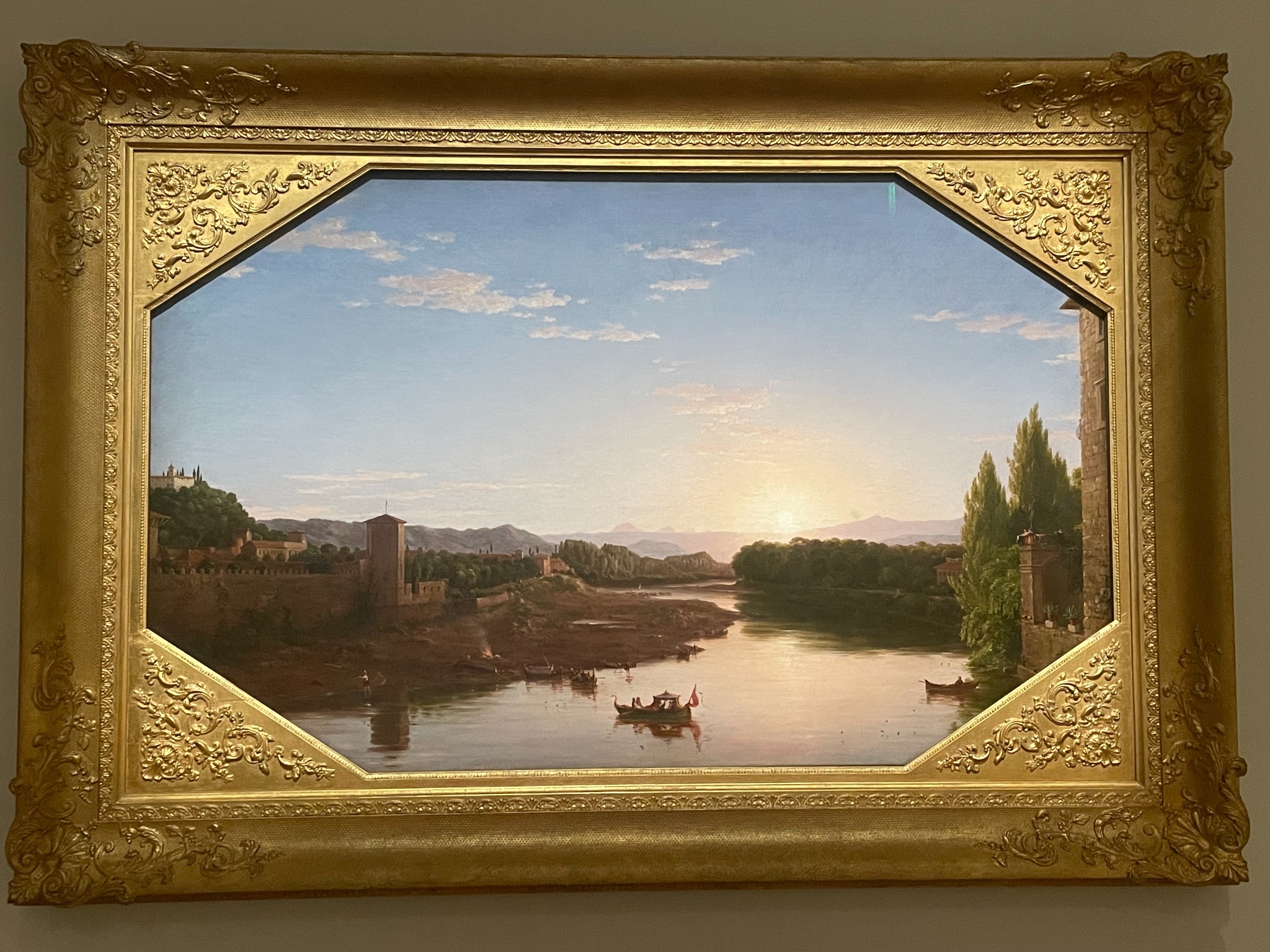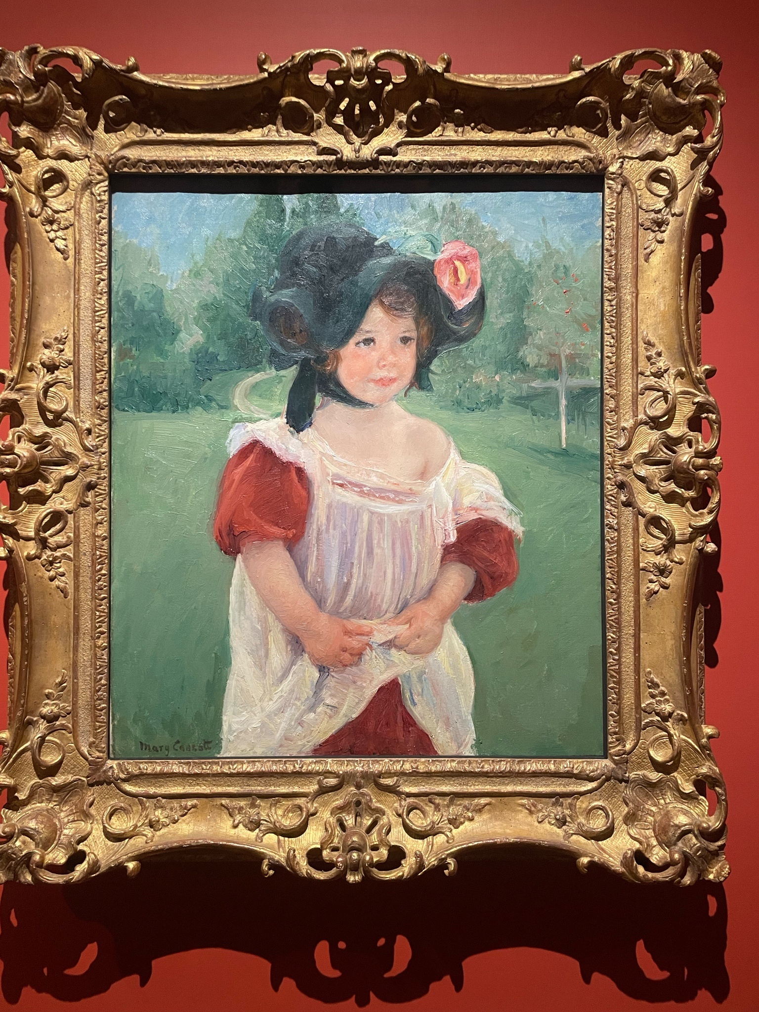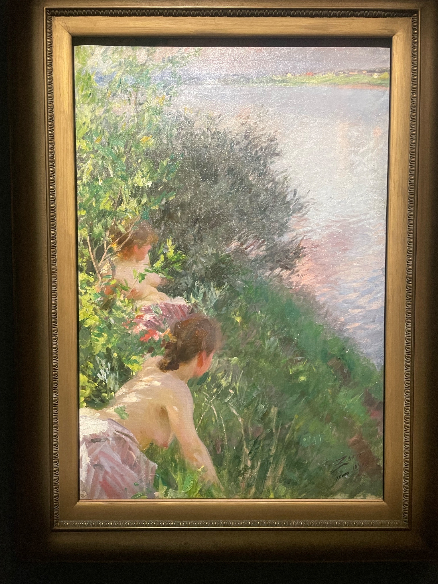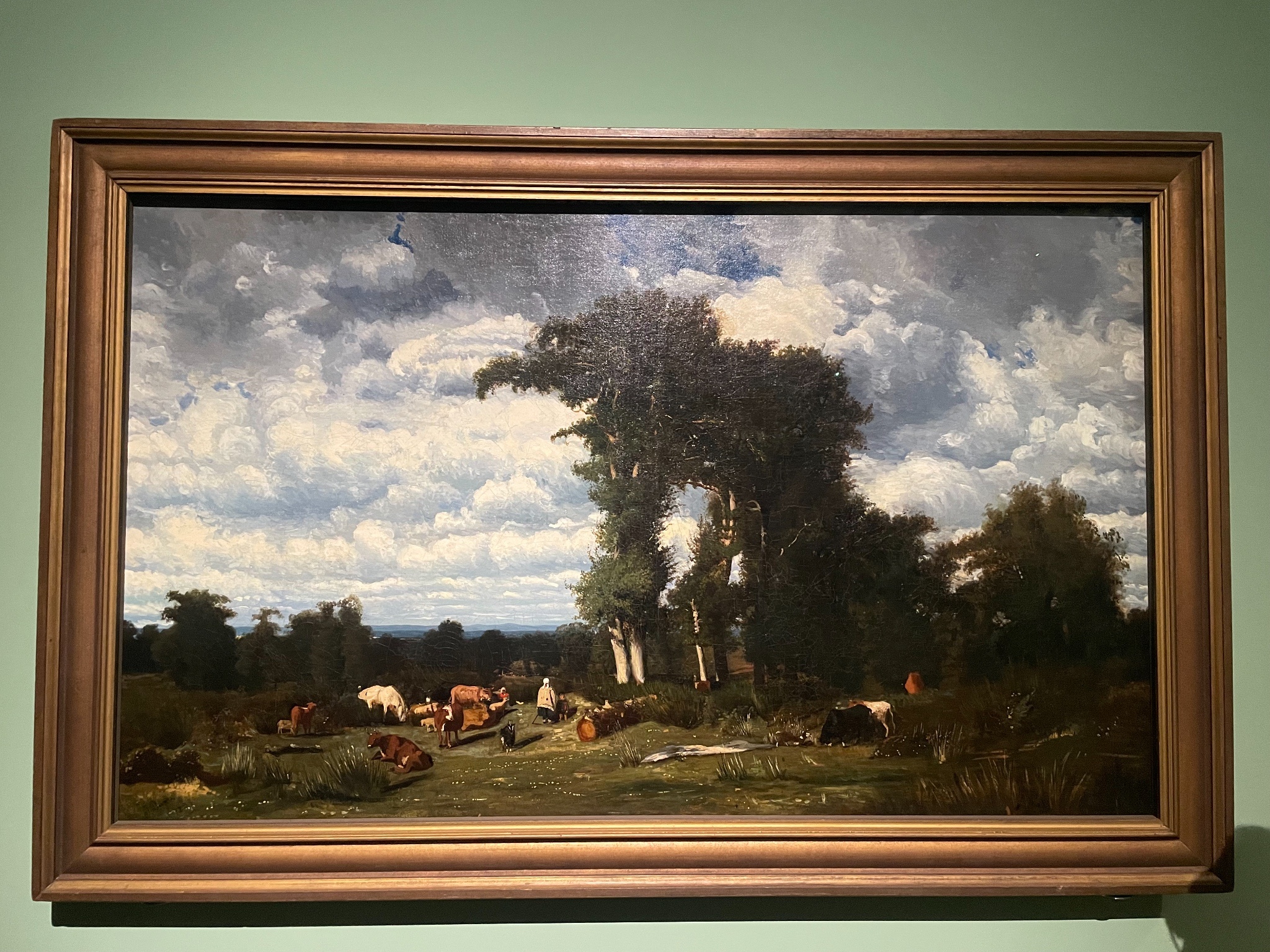 喜歡展場的音樂,很有氣氛,展間的設計也算有小巧思,有個展間的左側是巴比松派、右側是印象派,細看可以感受到兩個畫派對於細節的追求差異。我也喜歡美國印象派、色調主義等知識點,可惜的是,有點看不出來美國畫家「具體」如何把印象派給在地化。