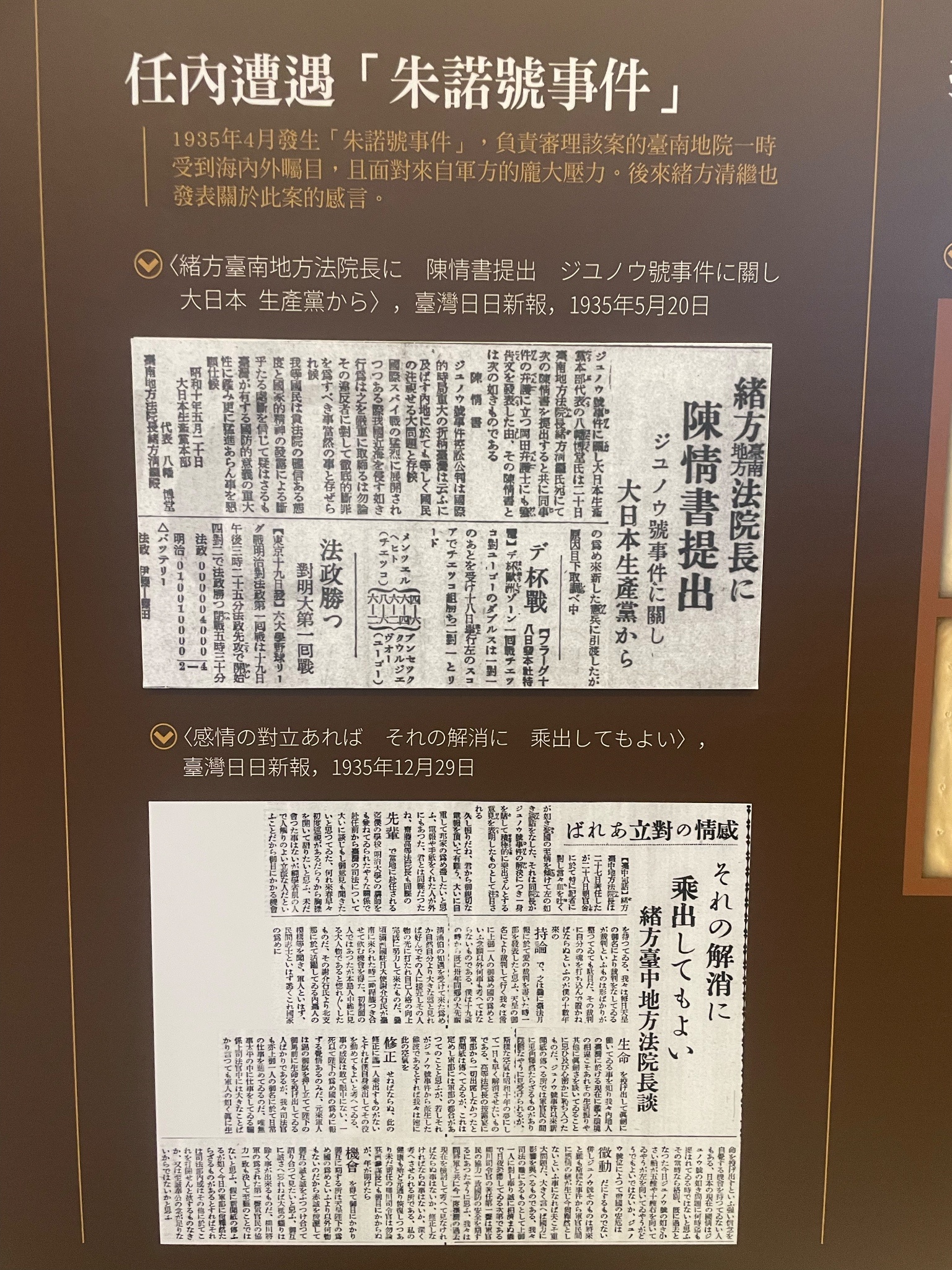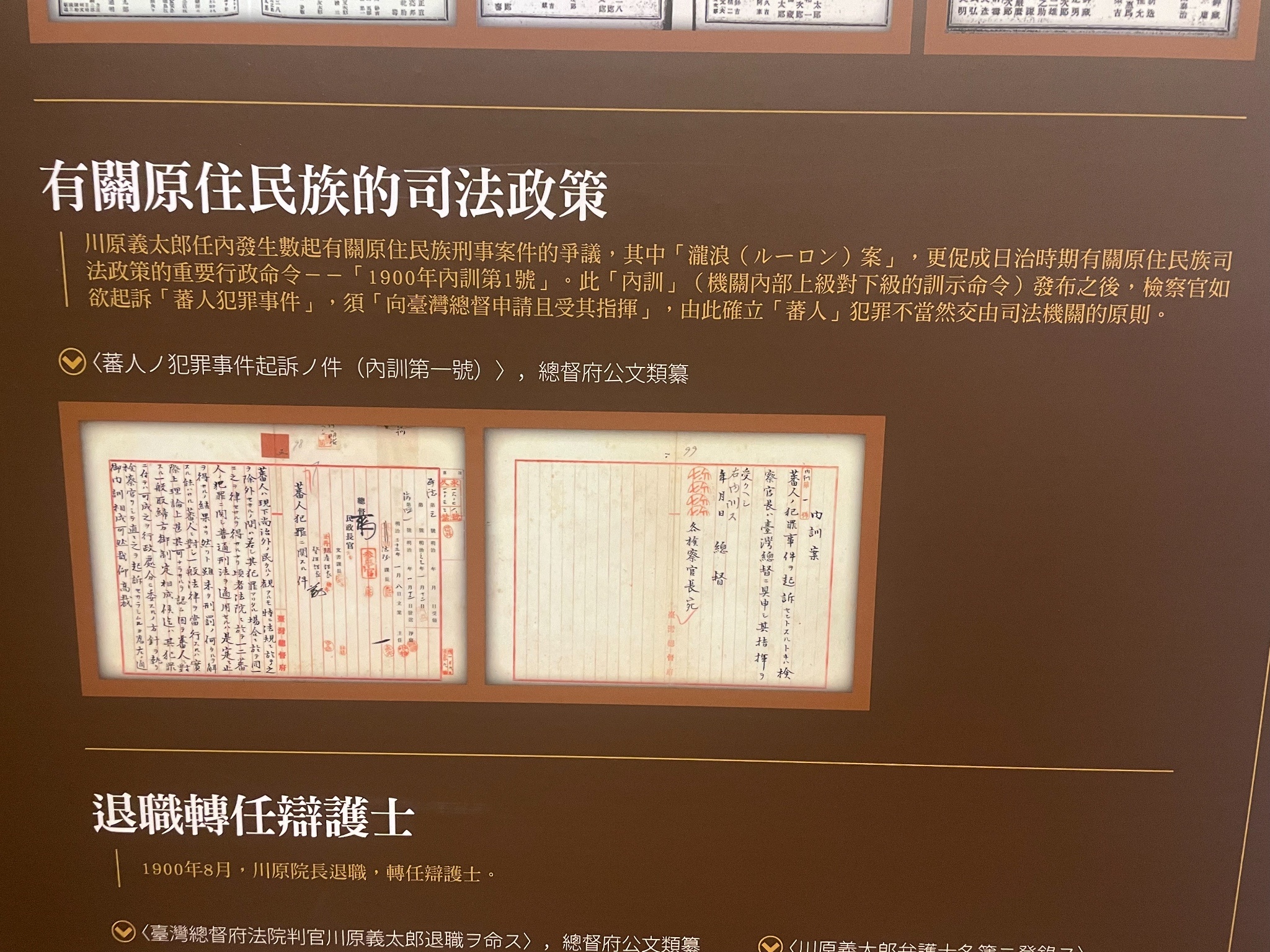 逛了兩個特展——《「權利」,你哪位?憲法解釋及判決背後的小故事》特展,以及「日治時期臺南地方法院院長特展」。前者看了一些案例覺得好難過,好比早期婚姻「妻子要跟丈夫住」,有些丈夫會登報要求逃妻回來作為日後官司訴訟的證據。後者則是那時法院制超複雜一直在改,也覺得可以更詳細述說其任內遇到的「大事件」。