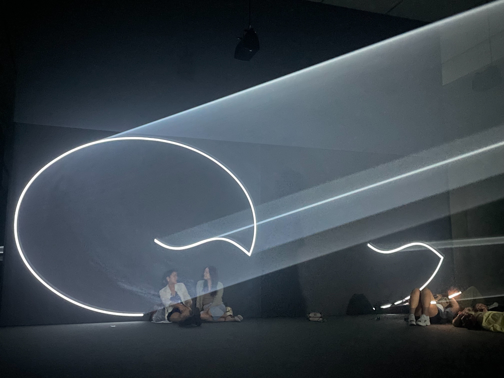 啊,但很多展覽的玄機,好比同一空間兩柱立體光的互動概念,建議要聽/看導覽才能get 到,有個用立體光緩慢在對面牆上畫圓的設計,真的太緩慢了完全沒注意到。