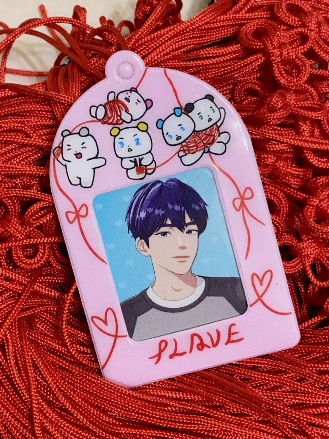 我們希望把這個好運傳遞下去給各位噗哩們,所以用plave與月老的紅線作為延伸,製作出了證件卡套,希望下次或未來有演唱會時,大家都可以收到我們的祝福順利搶到票!