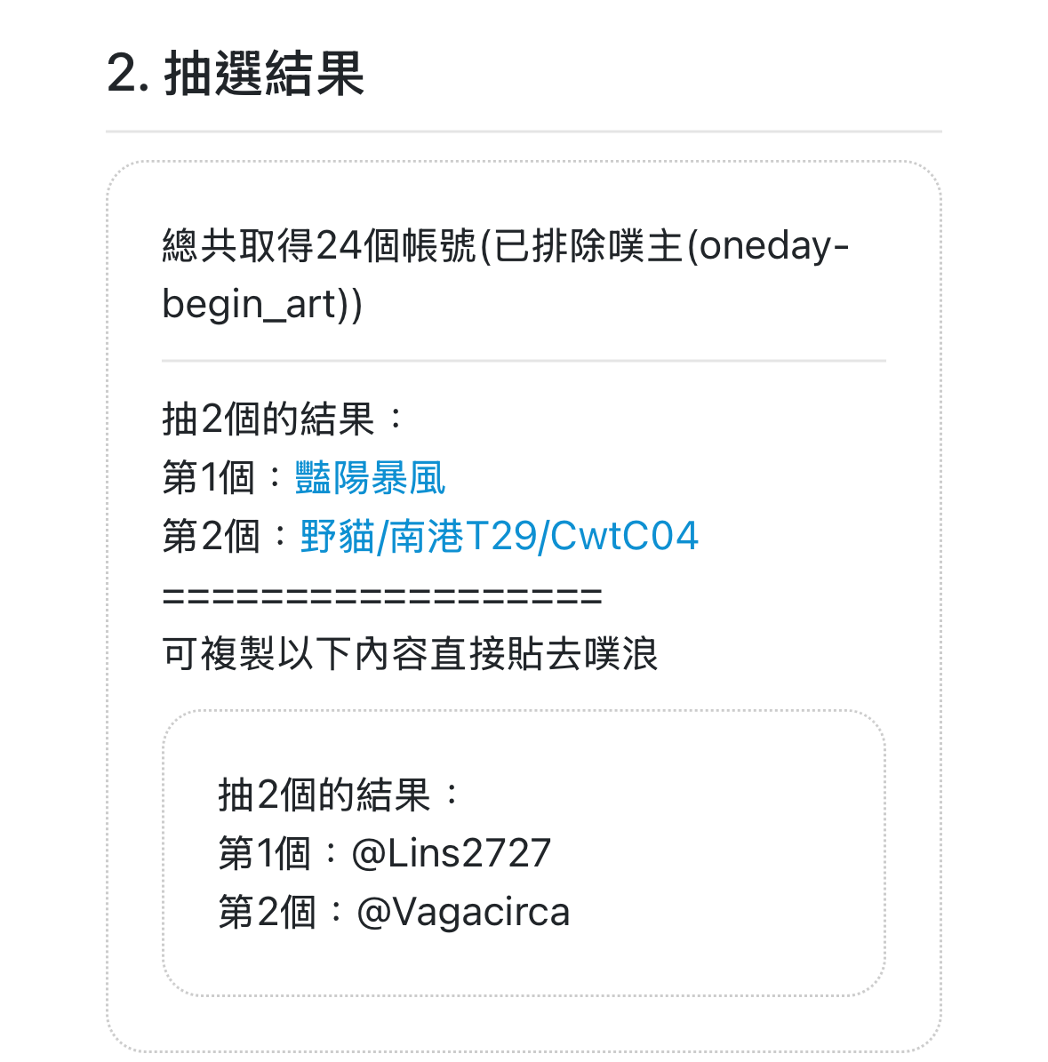 抽出咯!!恭喜兩位!!!