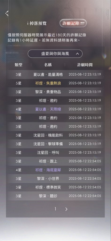 盛夏與你與海風 卡池記錄