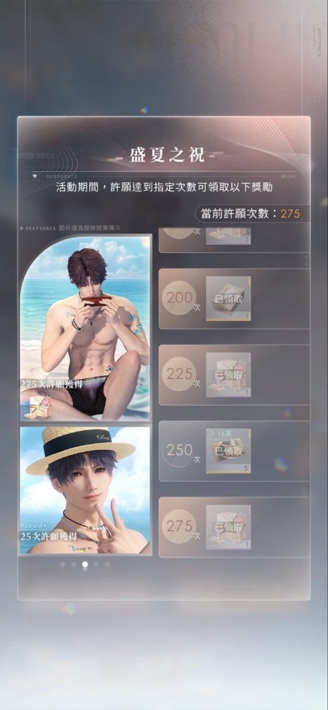 *至少會抽完275抽拿完五人的泳褲