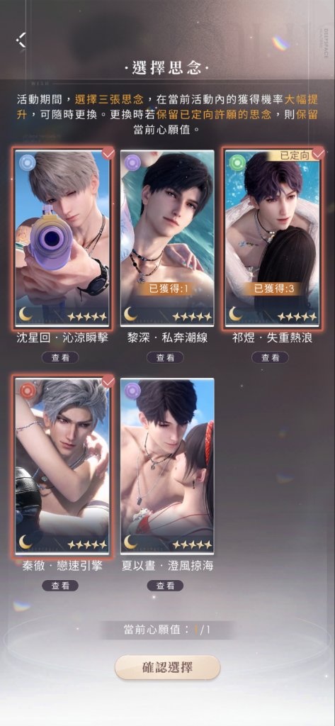 其實把200抽的盒子開了拿祁煜的話就可以疊滿了,但我真的想要這次秦徹的卡…所以應該會再多抽一點抽出定向的魚之後再開盒拿徹