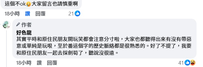 結果看到他剛剛在發很爛的歧視原住民笑話