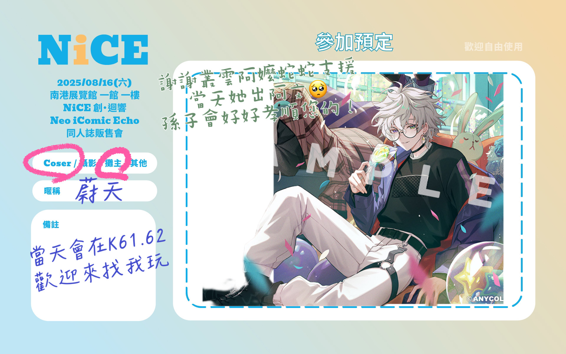 希望可以久違的跟大家在場次上見面