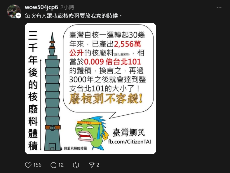 然後跟我說2556萬公升的核廢料只有0.009倍的台北101所以不怎麼樣是嗎