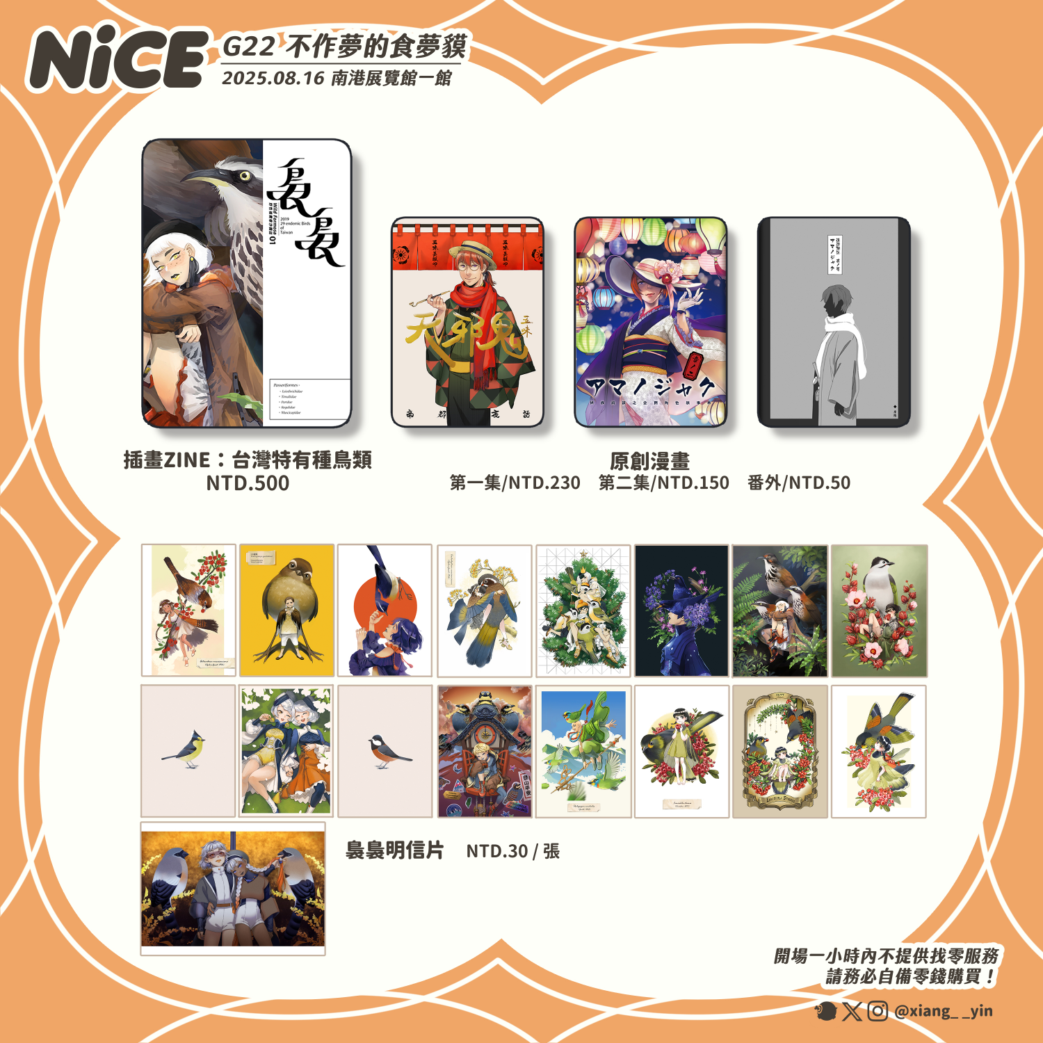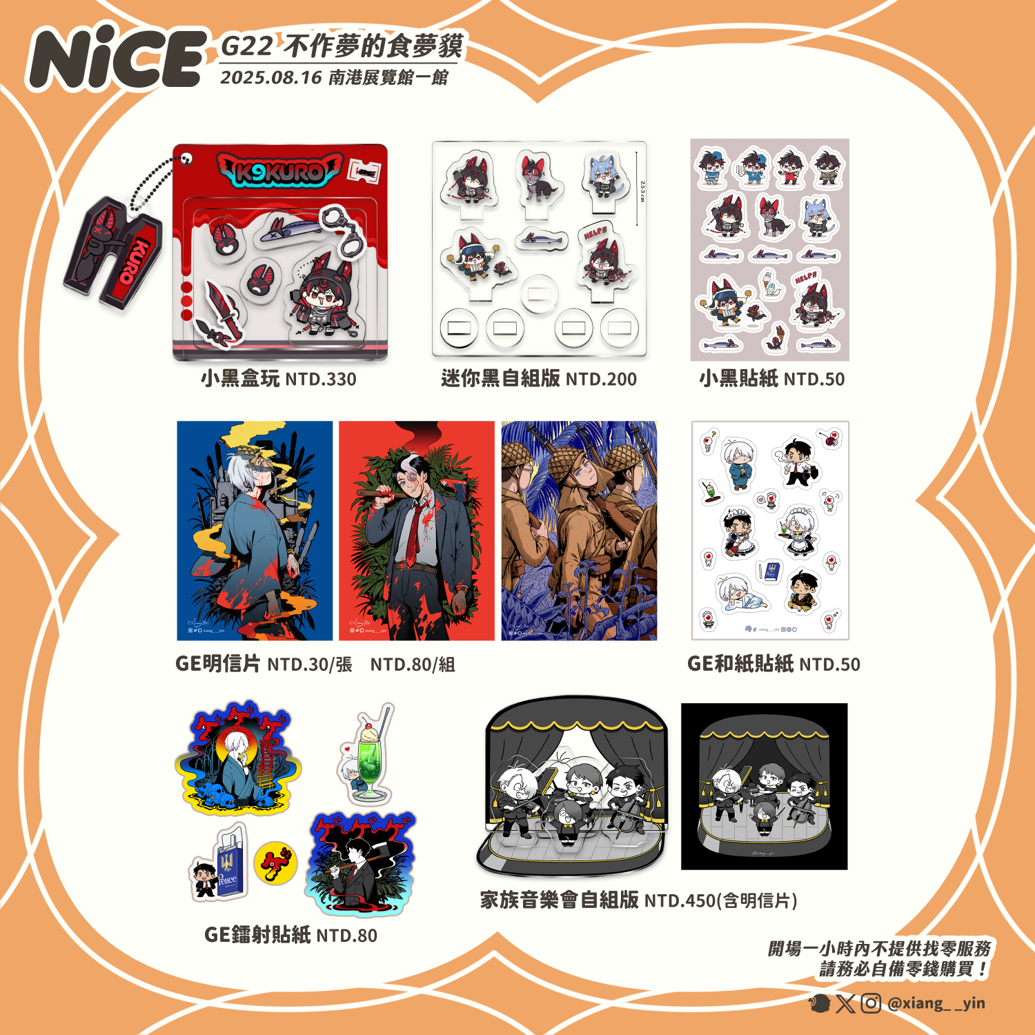 應該沒有其他沒講到的注意事項ㄌ……本周只擺NiCE,接下來沒有其他活動,順利的話CWT71見