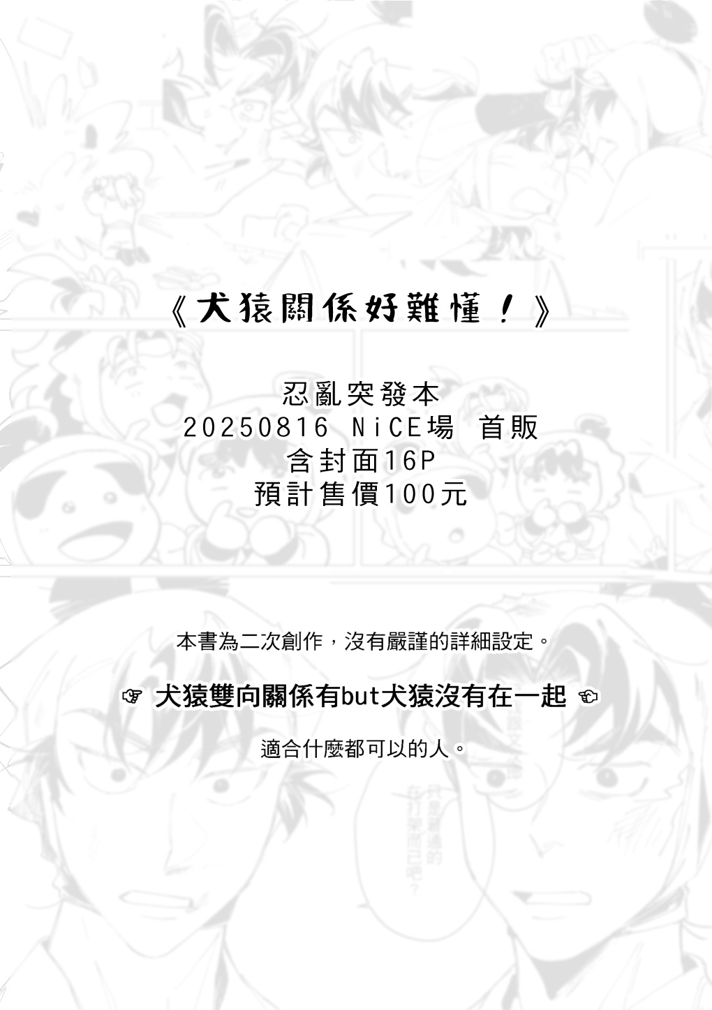 差不多這樣 犬猿貼紙少少的~如果有賣完今年就不會加印&通販