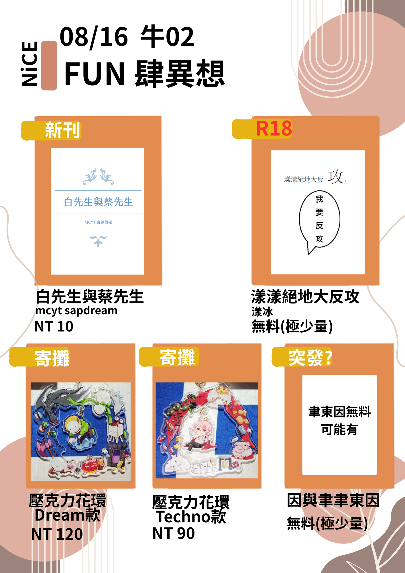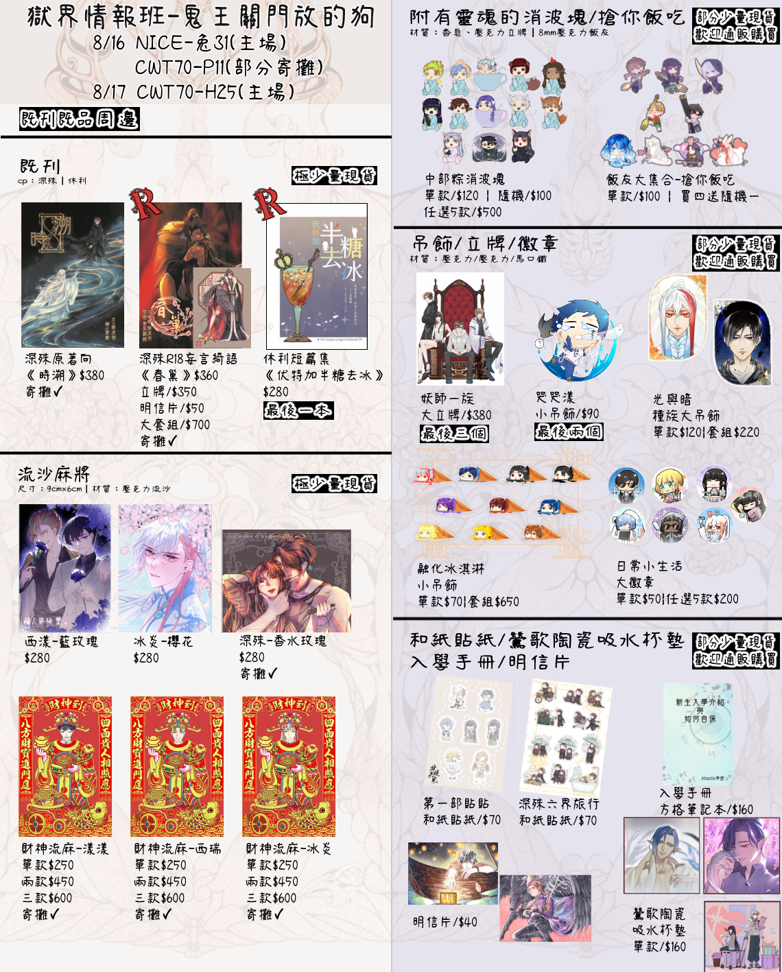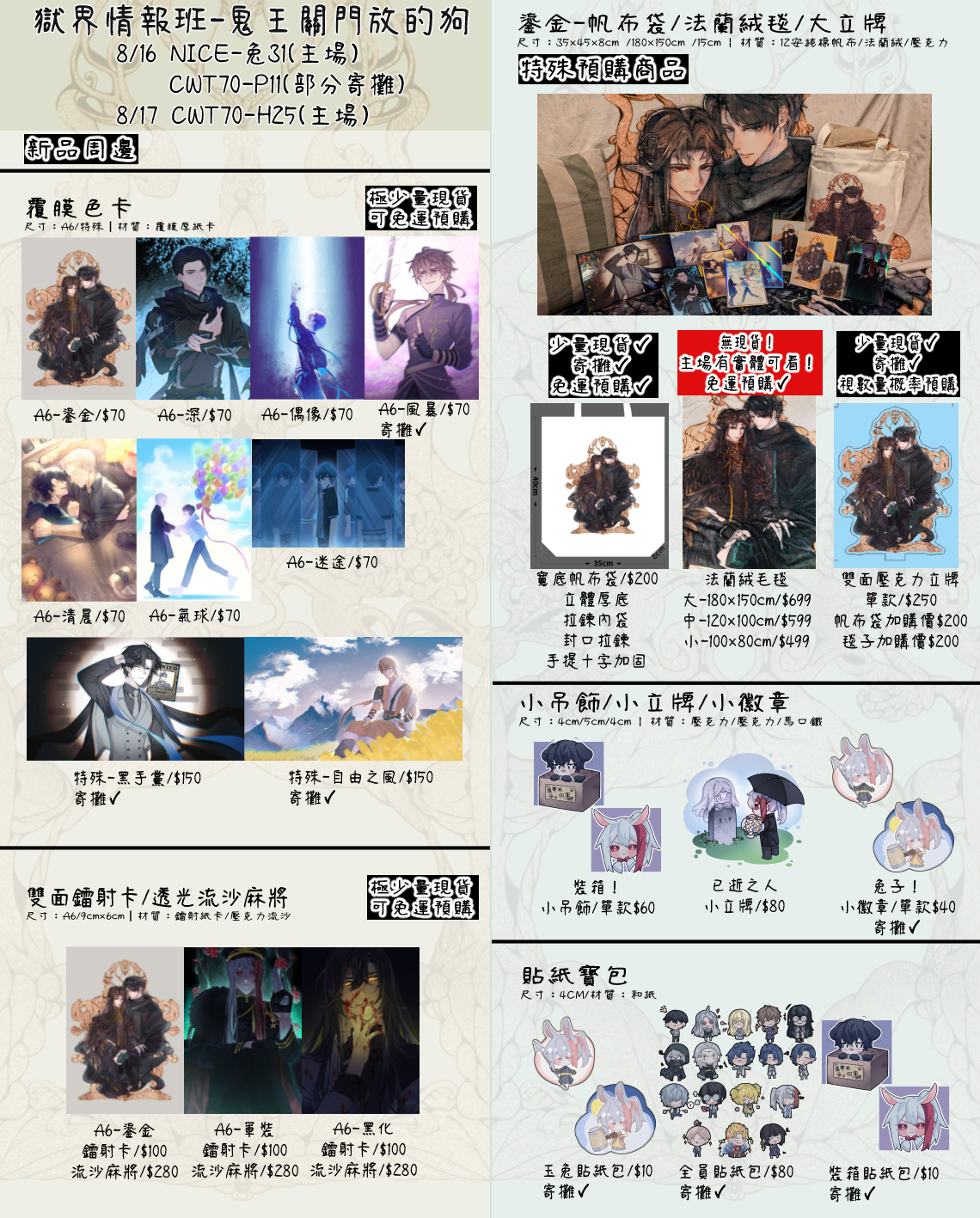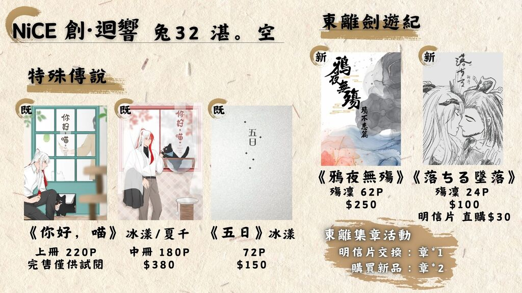 @ekinghank - 【工商】幫轉感謝! 8/16 NiCE在兔32,有特傳既刊和東離新刊! 購買R...