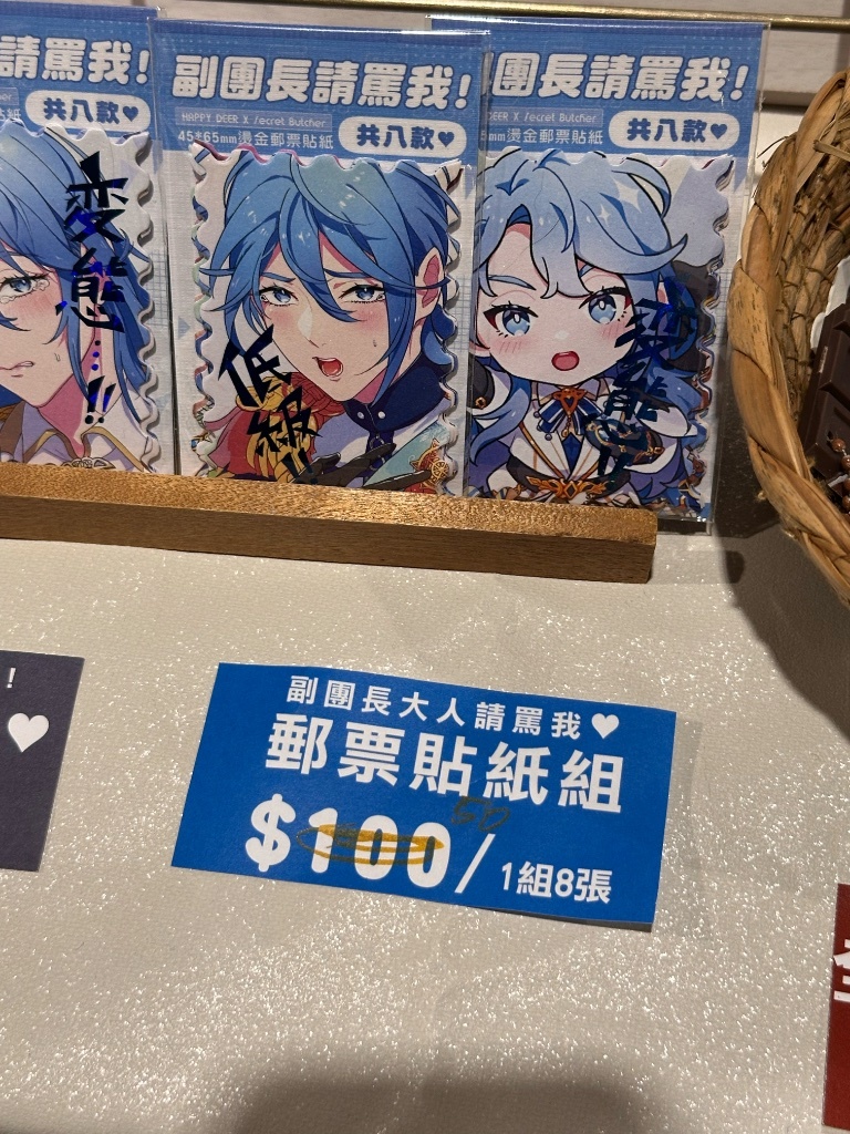 少量:小探員老婆上一場也打錯明天西打在3FB39,量奶立牌和婚紗老婆明信片套組會有少量補貨~扇子也有預留明天的份