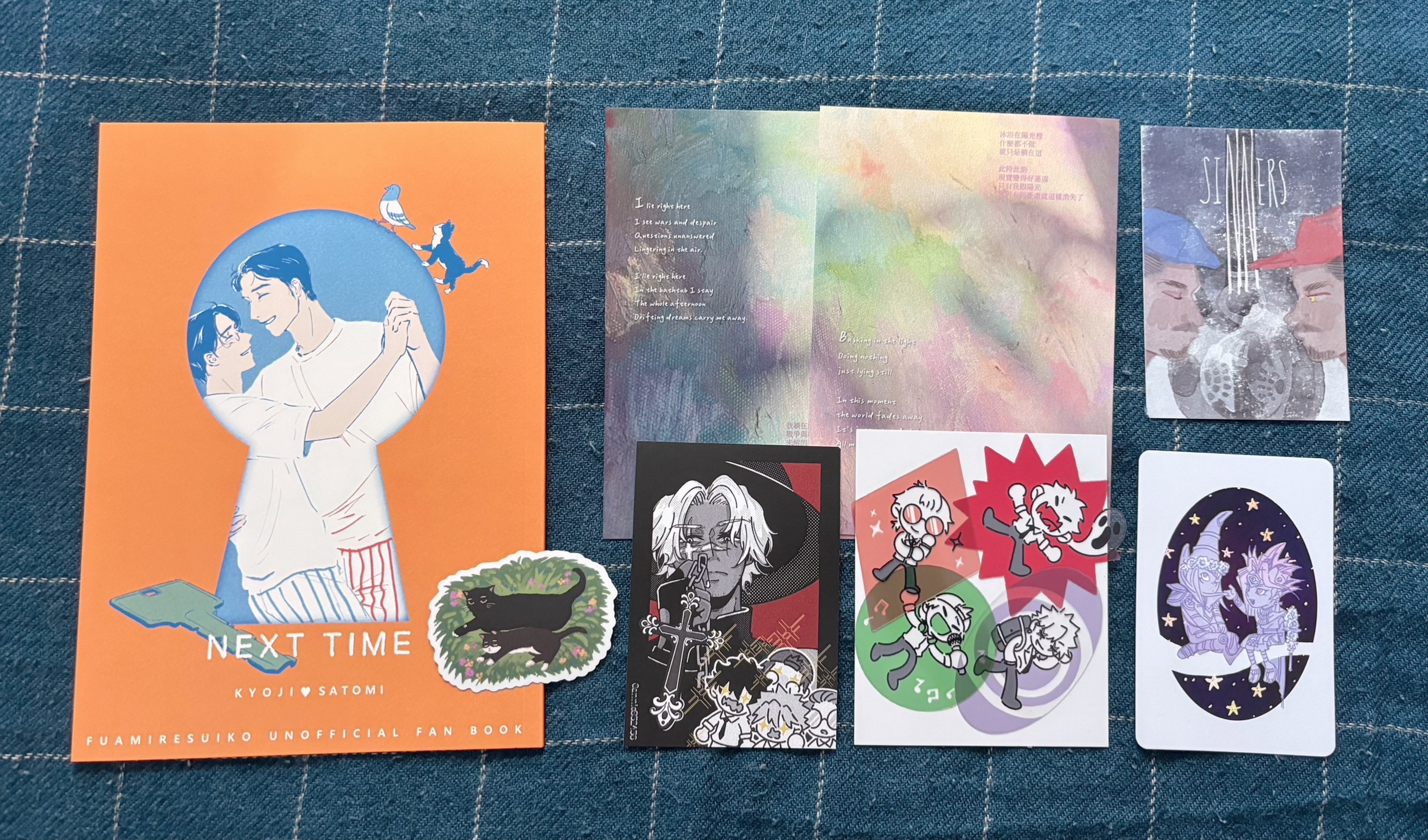 這次比較意外的大概是很多人路過,只是被封面吸引就把刊物全包了,我都還是會稍微介紹一下是什麼作品的二創,同時心裡也覺得又驚又喜,謝謝大家對這些封面的支持