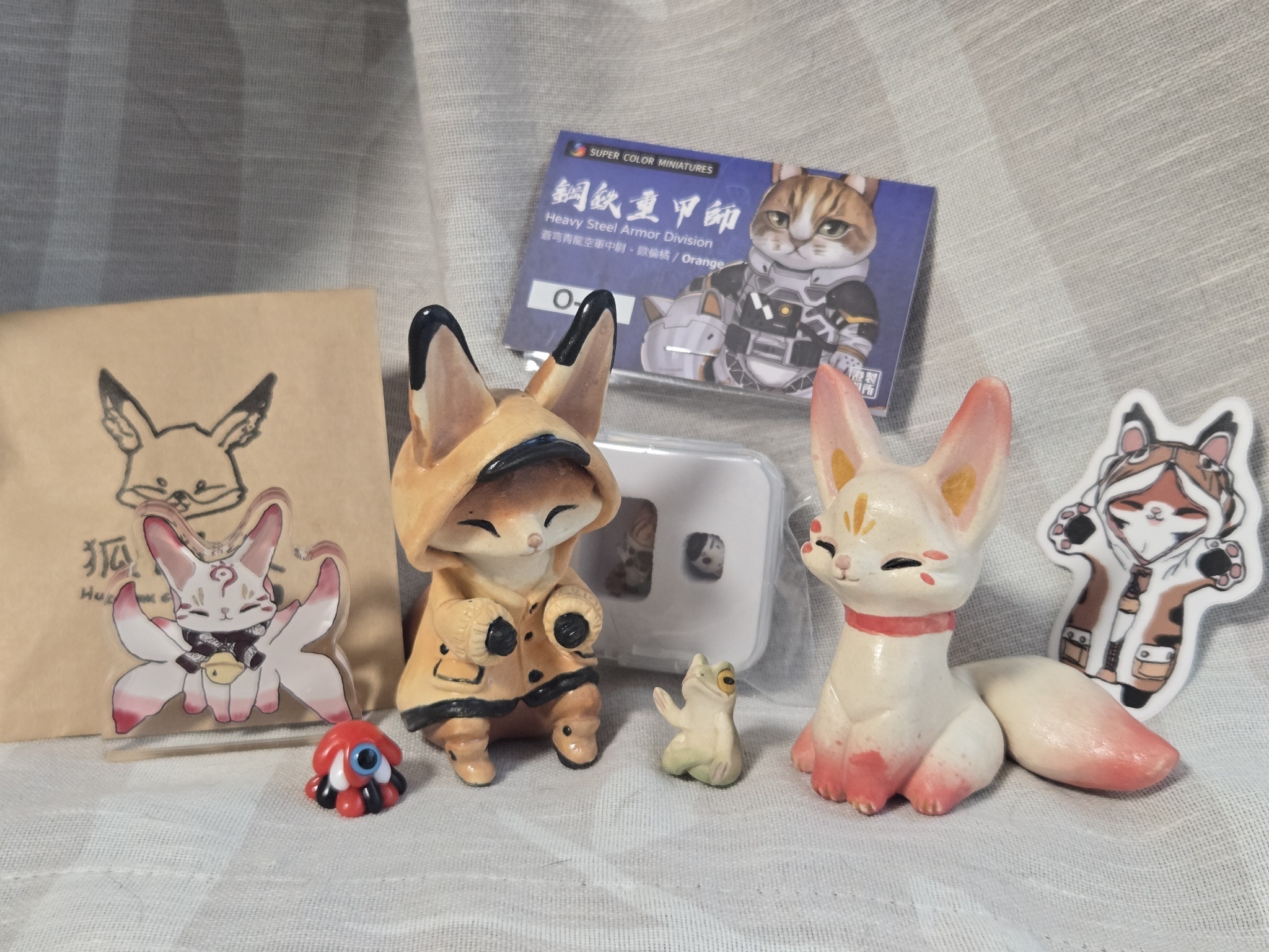 預支明年的生日禮物粉紅妖狐跟立牌還有融化的小怪物OC配色❤️❤️還有超驚喜的兵人貓貓,是創作者家裡的三貓(還有給我們看本貓照片😂)