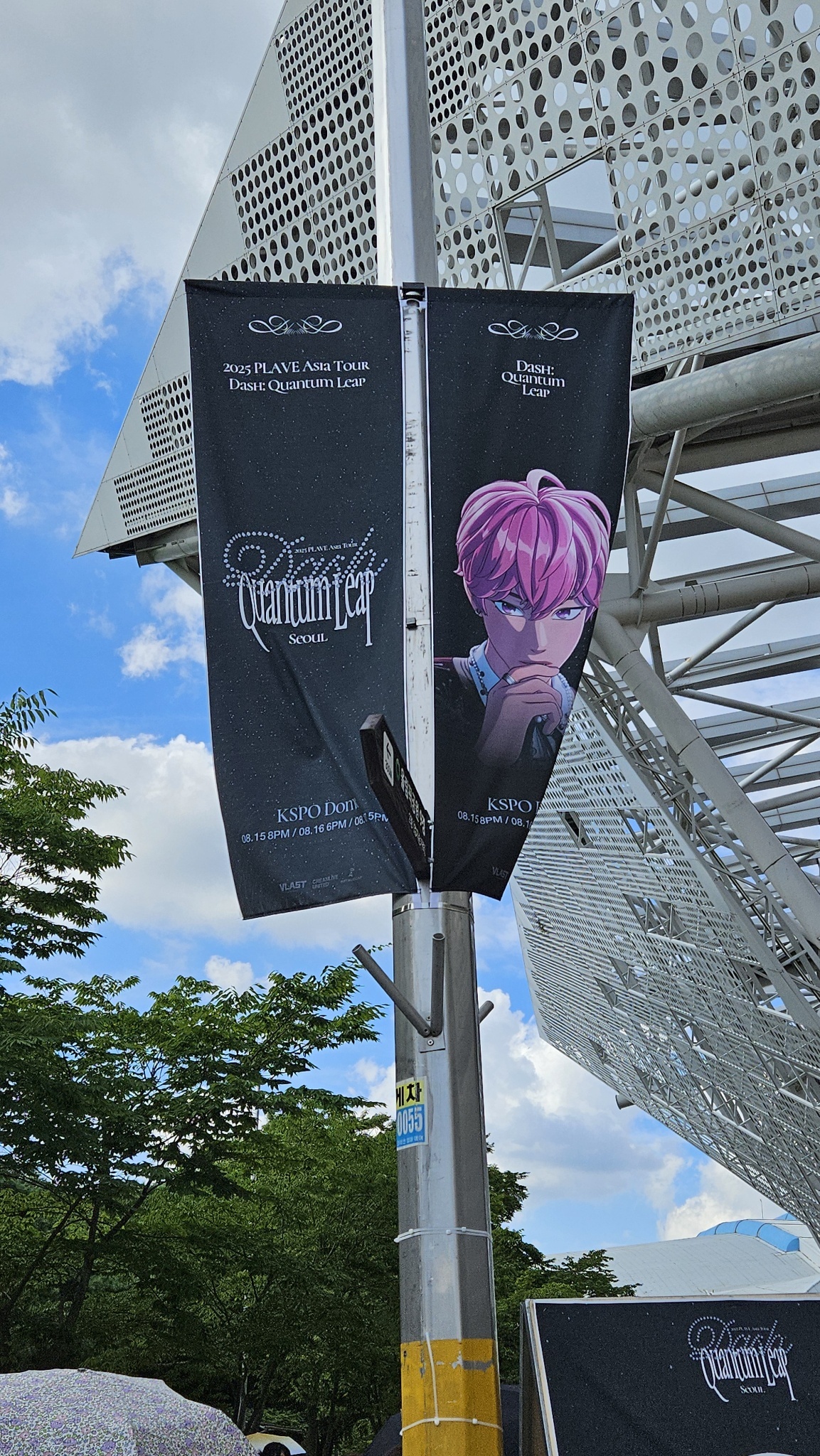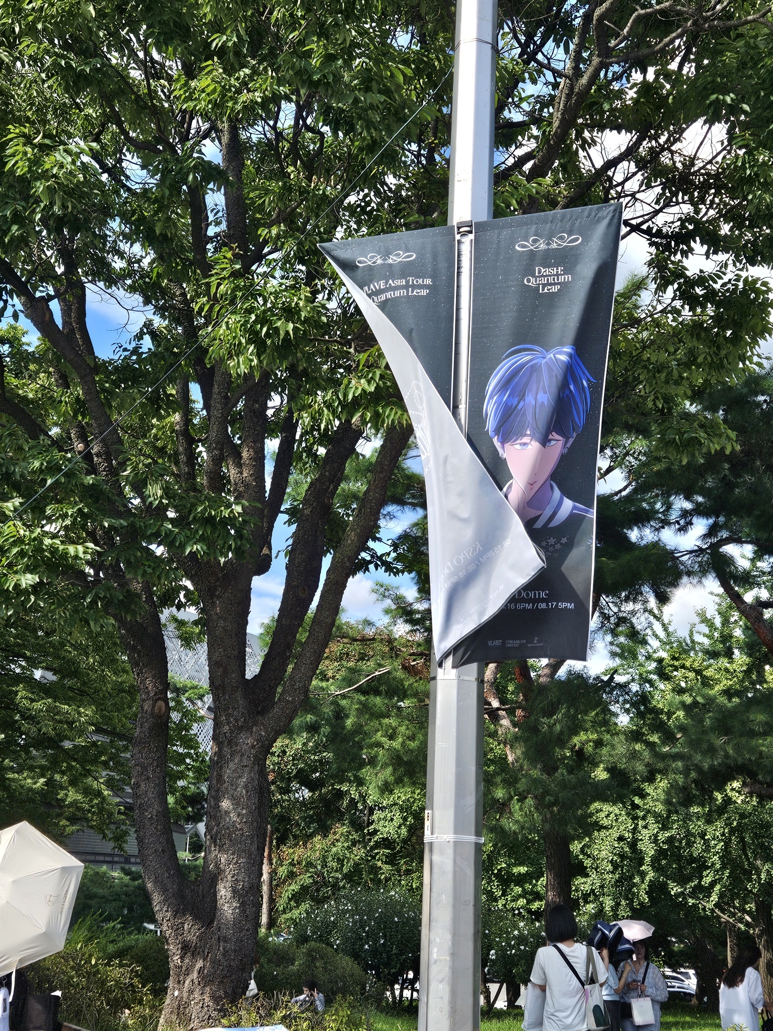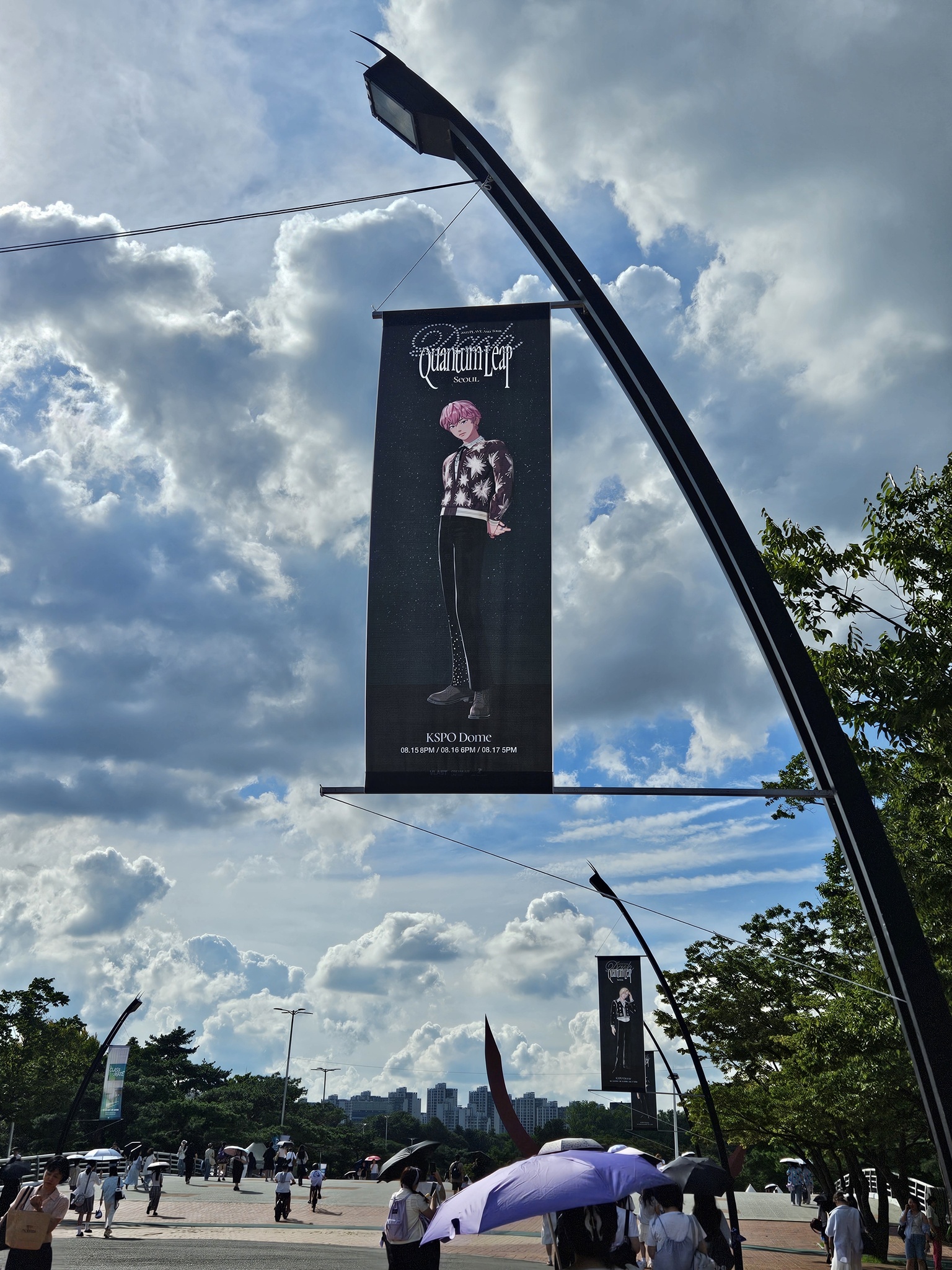 之後的路燈(?)有成員們的旗幟