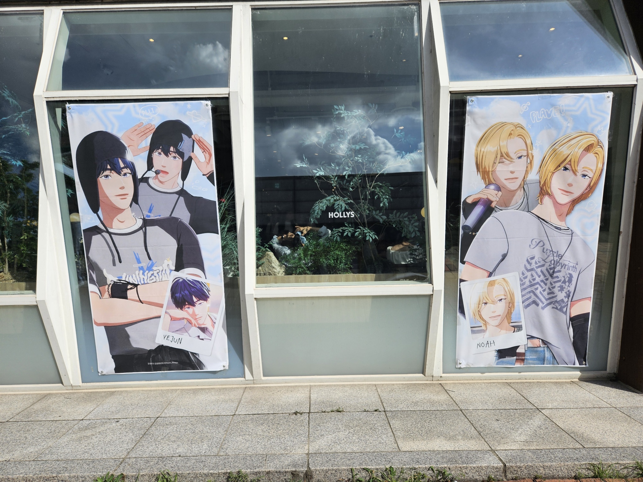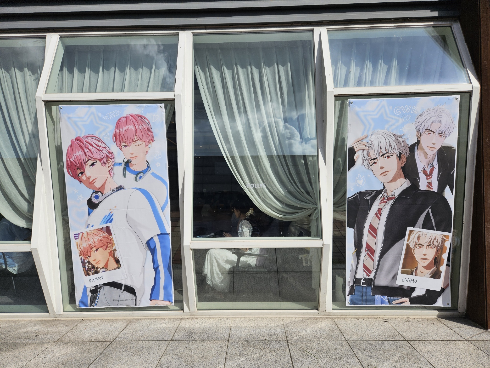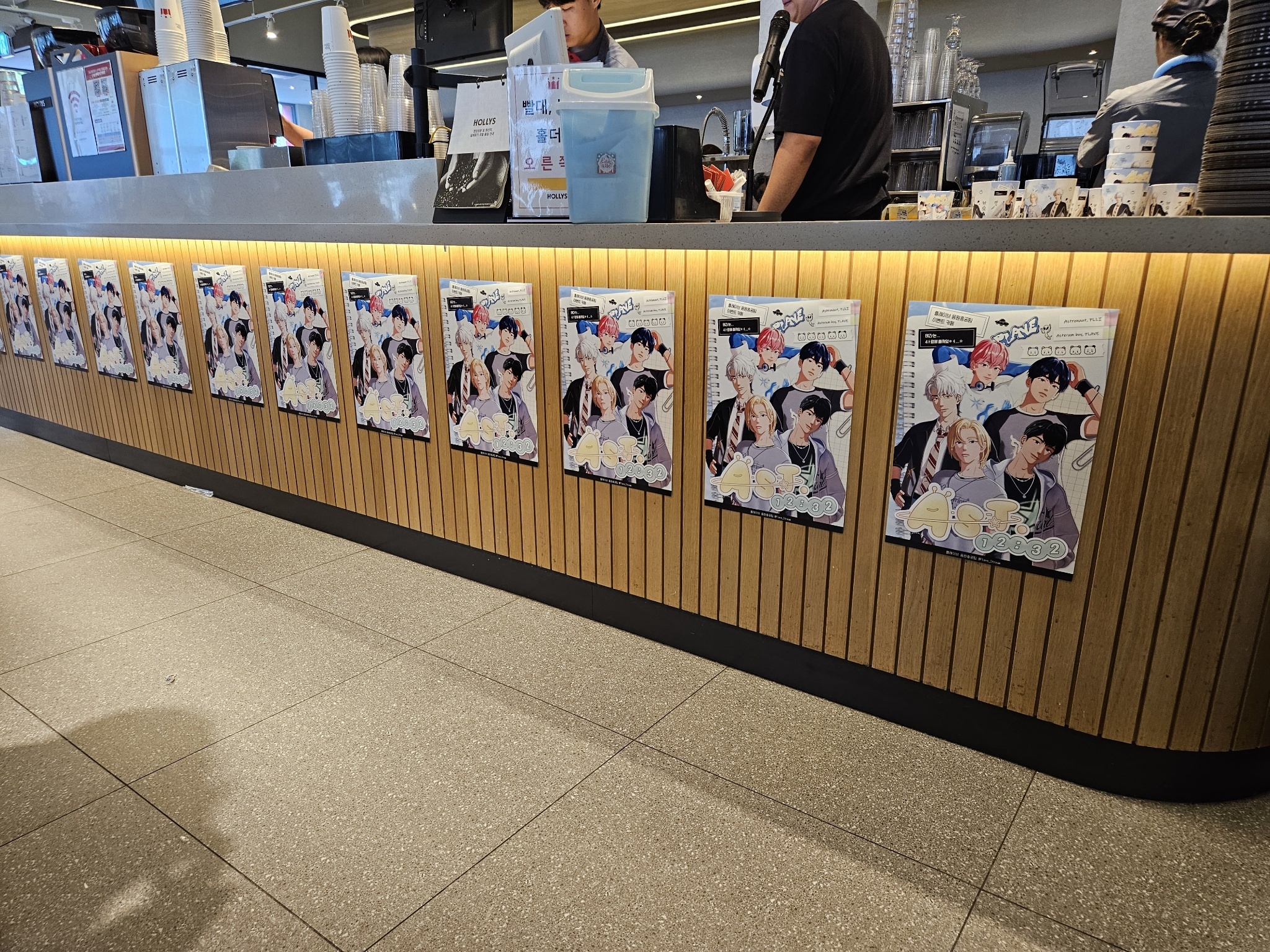 看到很多人在排Hollys也看到店外的人像壁貼