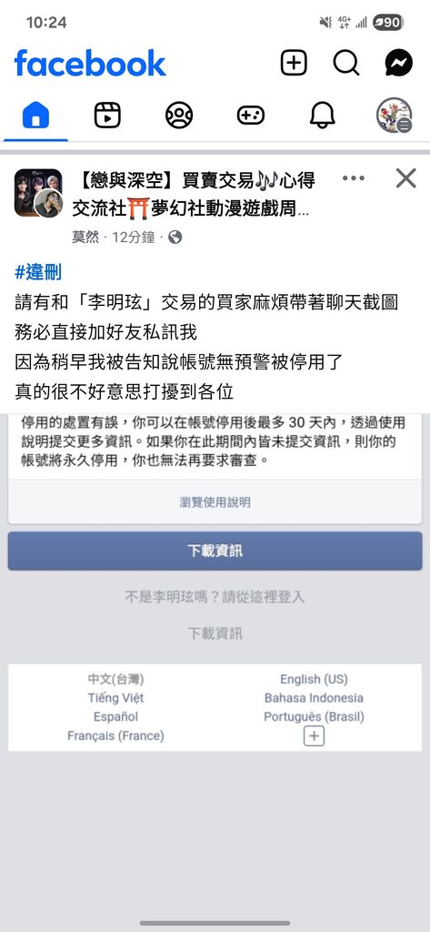 我上次發尋人還被他要求刪文 我乖乖刪了(怕他因此不退錢給我)然後一直催他 他一直拖 結果到現在還沒拿到退款 他帳戶還不知道怎樣被鎖了 我現在沒法繼續傳訊息催他