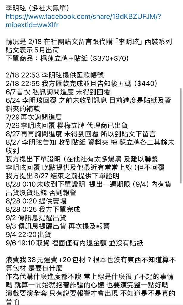不知道這邊有沒有跟過這位代購的,就都搬過來提醒一下(非發文當事人只是雞婆團員之一)