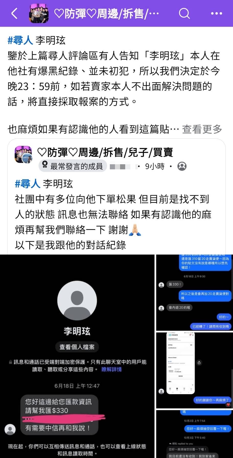 oyster8410: 之前遇過一樣的代購,後來發現對方是未成年+錢被挪用(不是花在2次元),後續有線下抓到人+連絡家長後退錢,