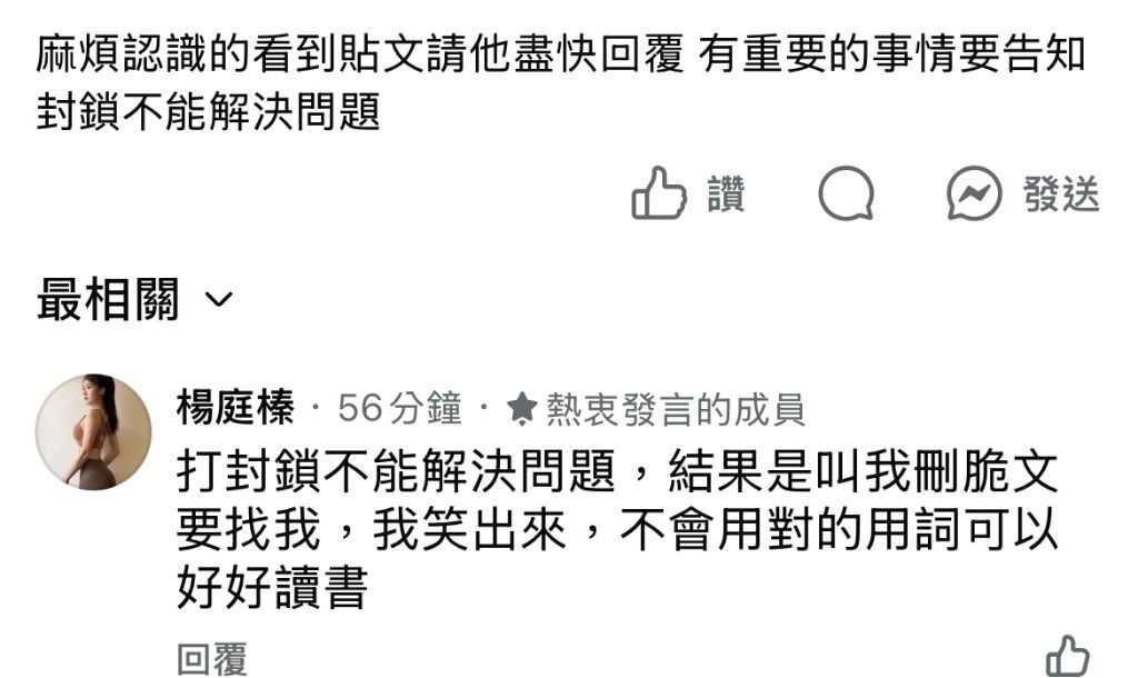 他現在在私訊發黑單的人嗆聲