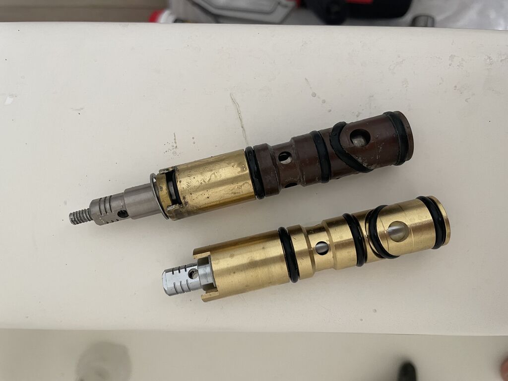 早上跑去買carriage bolt + 1/2 inch tap。先把卡住的cartridge casting用tap鑽出螺紋,把carriage bolt鎖上去,再慢慢用板手把casting拉出來。這已經是last resort暴力解了,試了半小時才成功。