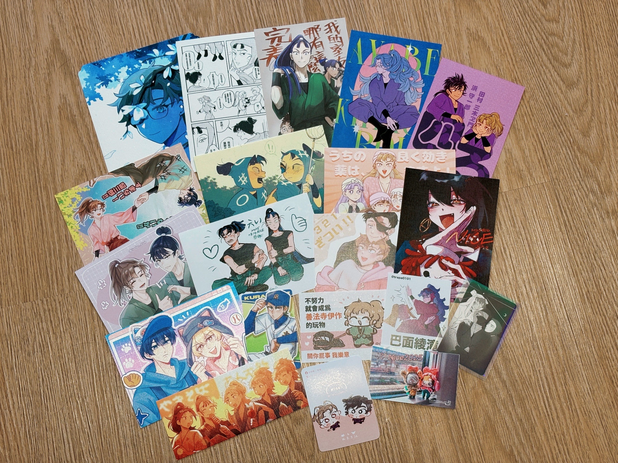 而且因為這次連攤的朋友們(ㄒㄊ、日日、小倫)大家都有出忍者的東西或準備認親卡,所以每次有他們的親友來攤位交換的時候都會被問「ㄟ那你有吃文仙嗎?」然後順便幫我發無料⋯⋯天啊,有朋友的感覺真的好棒(想用那個麗娜握拳但我找不到表符