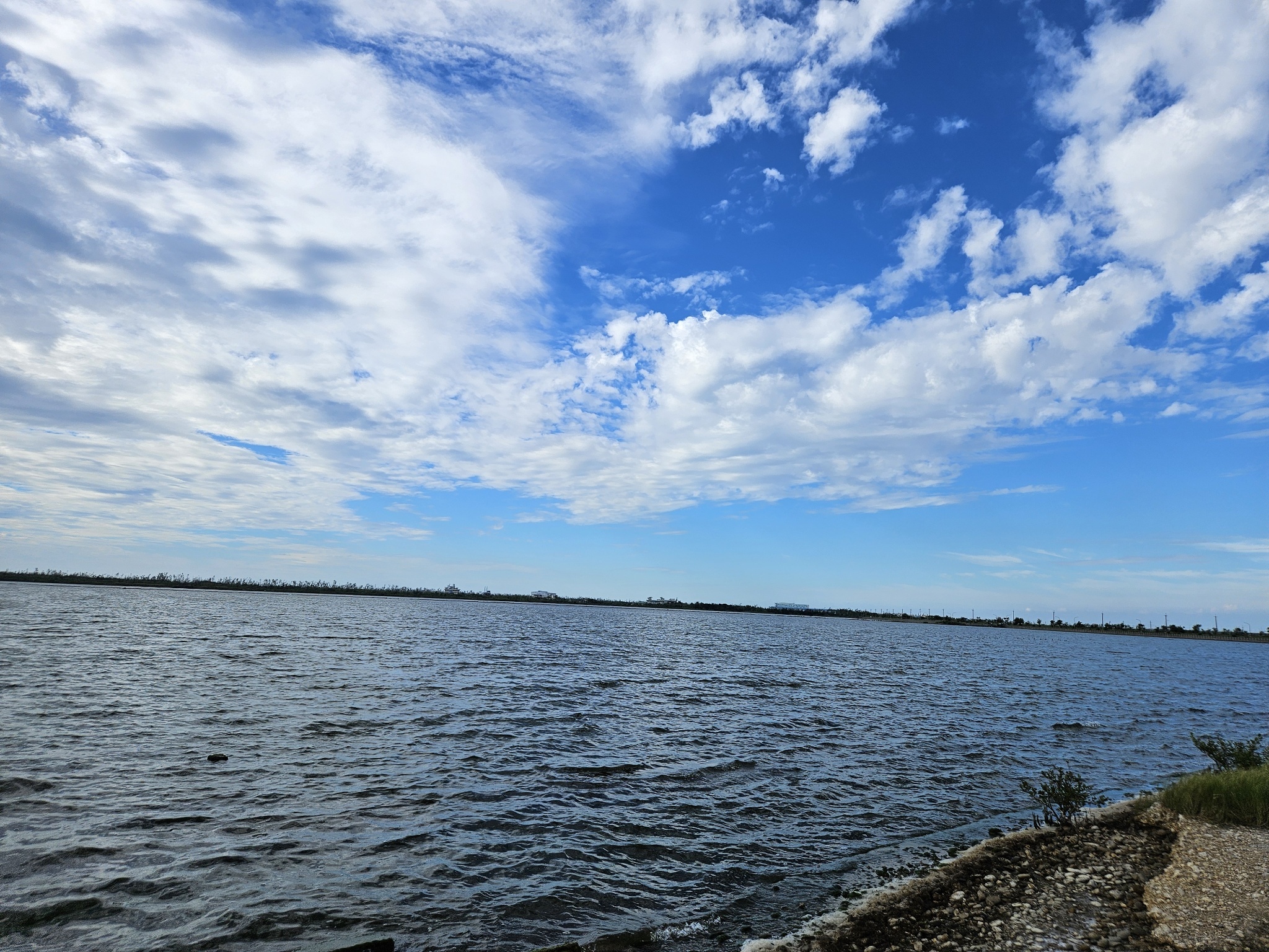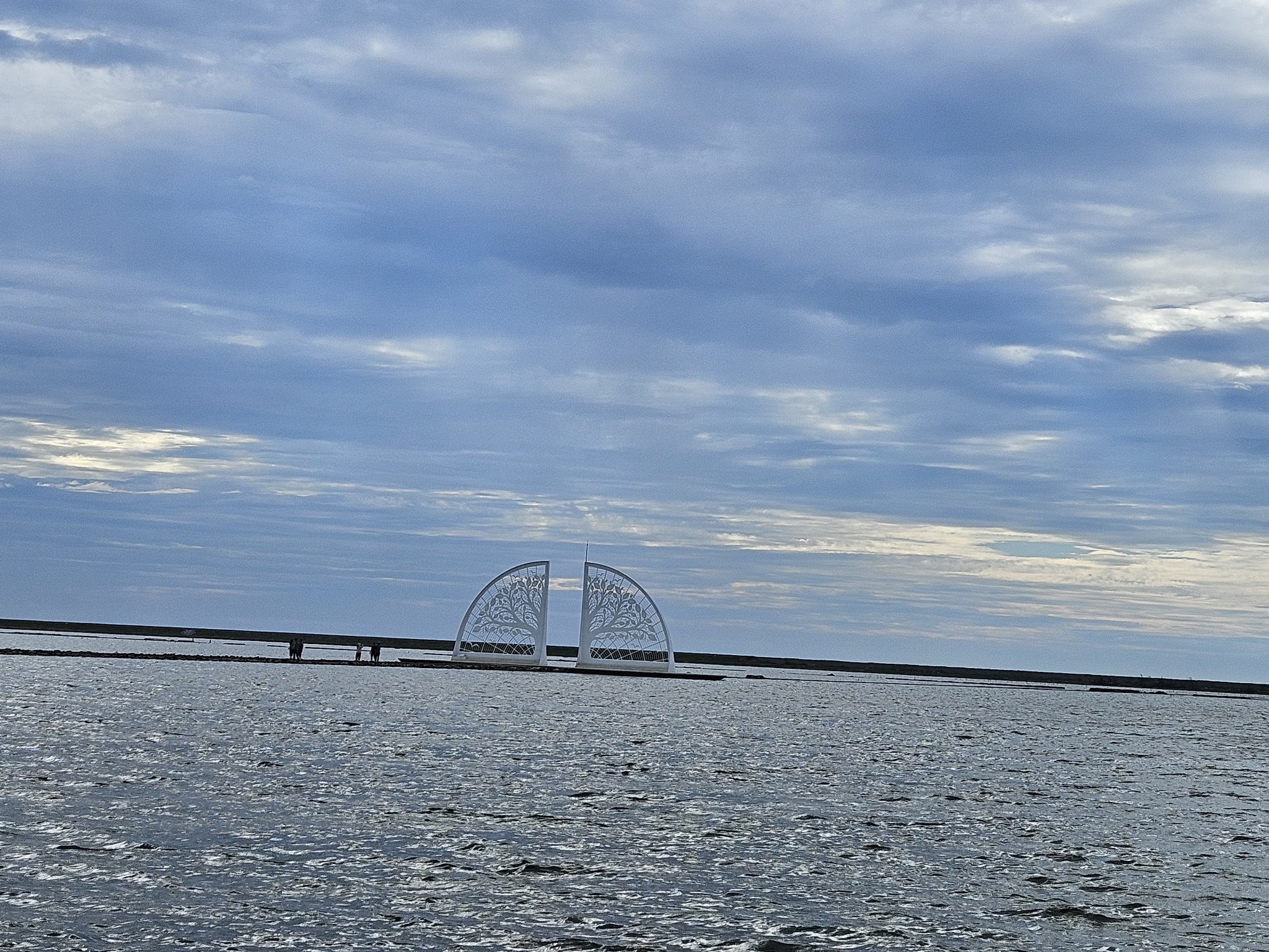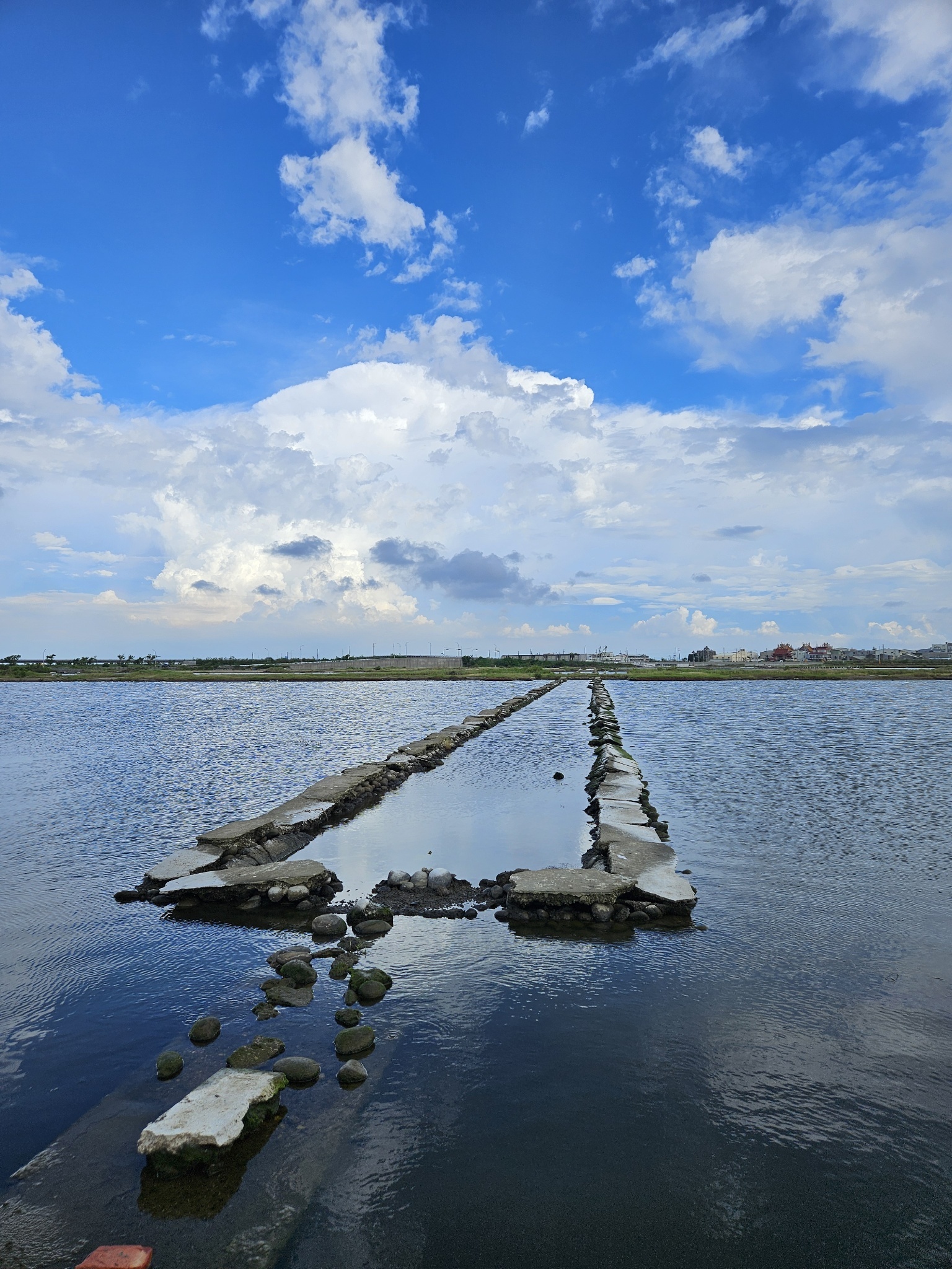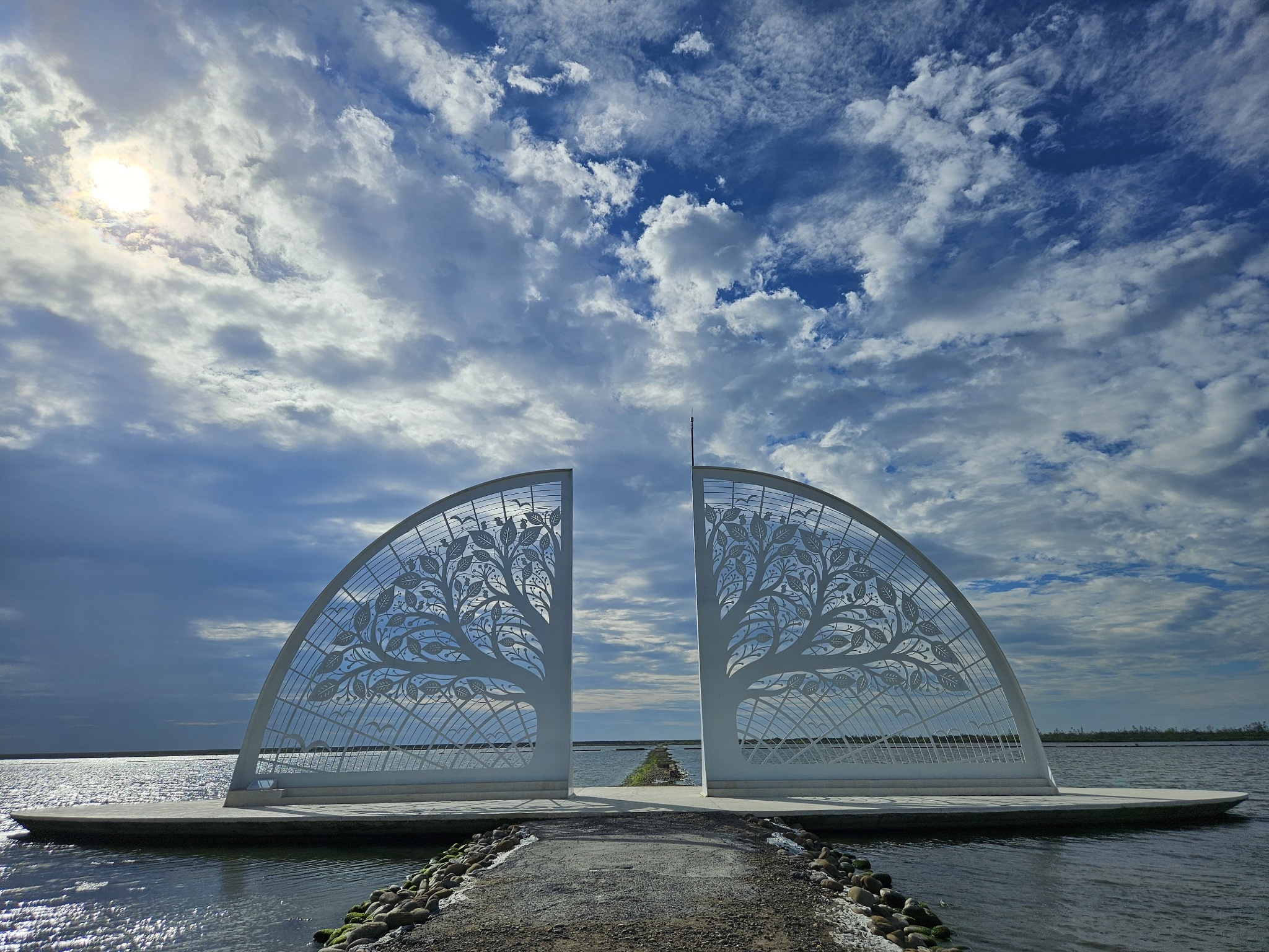 青鯤鯓扇形鹽田中央的生命之樹,在藍天白雲下,景色優美