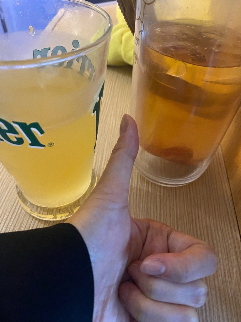 想說他跟怡婷一人一杯,但他拿著另一杯對我說:「這杯給你~」