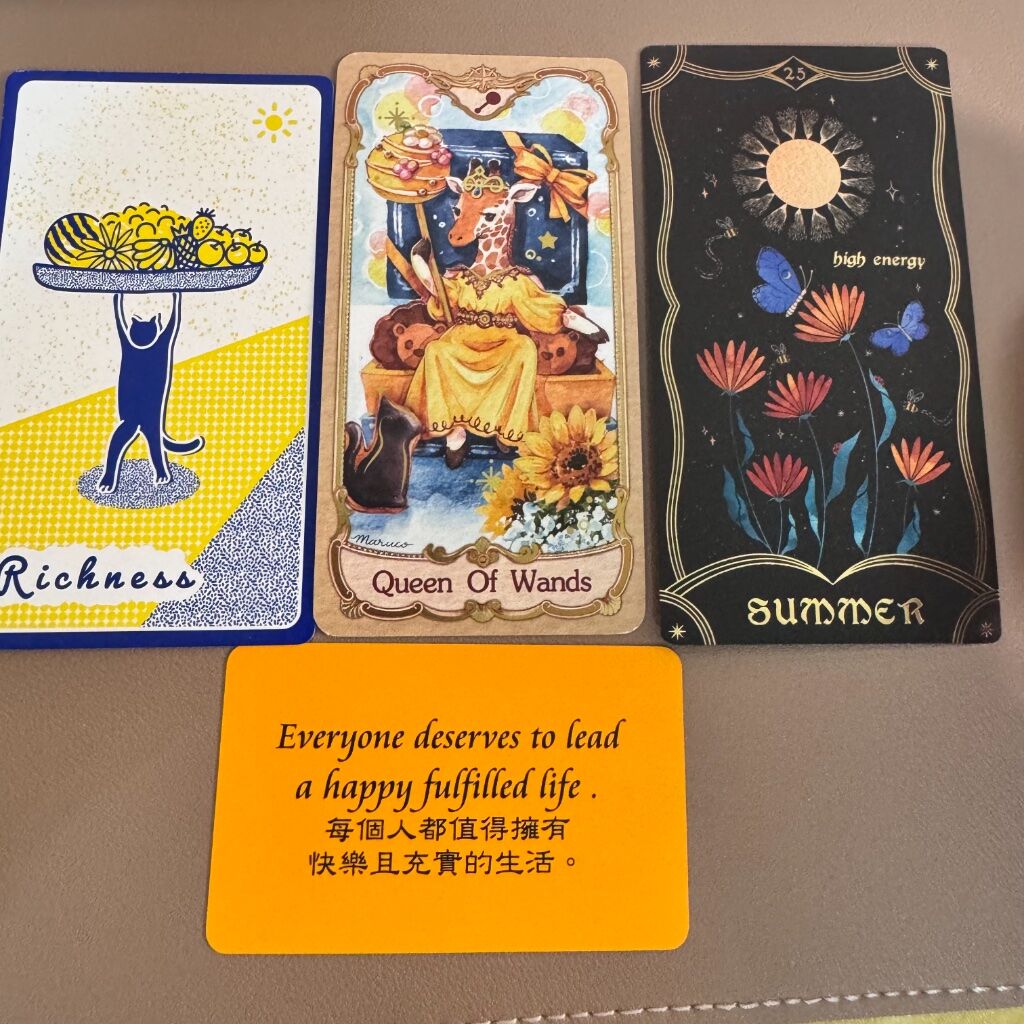 彩虹卡:【每個人都值得擁有快樂且充實的生活】 這是宇宙給予每個人的基本權利。不需要為了快樂而感到愧疚,也不需要為了充實的生活而道歉。你天生就值得擁有美好的一切。