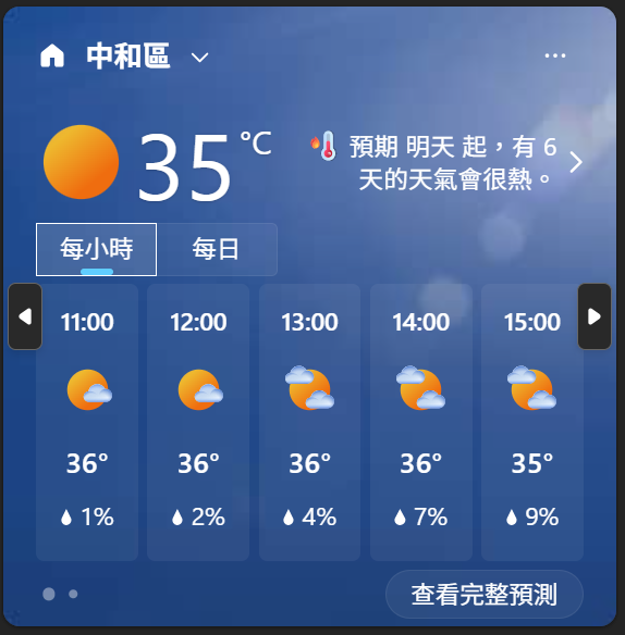 預期 明天起,有六天的天氣會很熱。