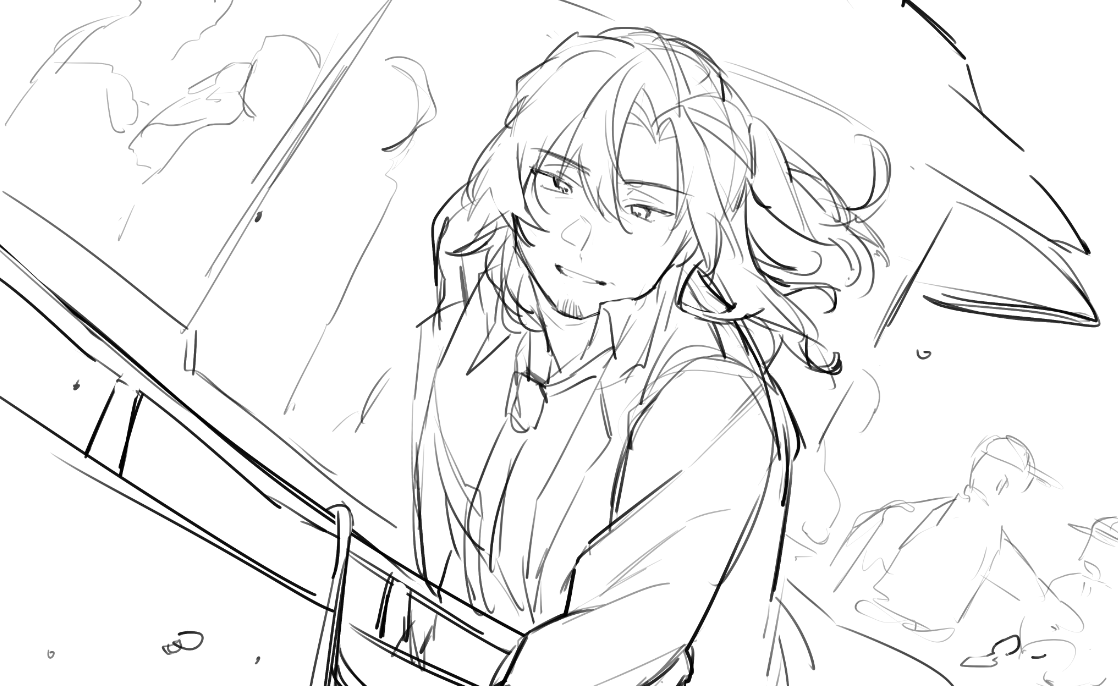 在畫這張的時候其實一直在想織田的恐懼表露無遺吧,就像第一次見到異世界的海一樣,那是可以將他吞噬的存在。是打從體內感受到的深層恐懼,光是看見他就會發顫了何況要他下水,就算他現在擁有人類化身好了、那種刻在種族意識裡的恐懼後怕是不容忽視的……