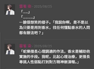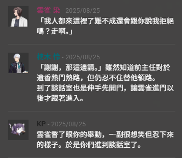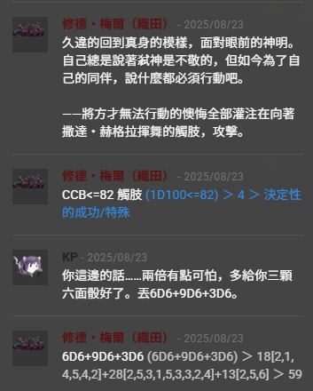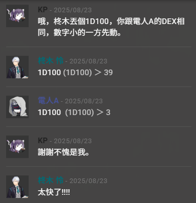 這邊的雲雀感覺會有表情變化欸很適合拿來畫漫畫,但是總之,真好看,挑人弱點打到精神崩潰的這一點ㄇㄇ深有體會(從見面的第一眼就開始崩潰的PL)(甚至不是對應NPC)