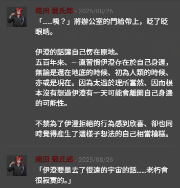 織田.事到如今才意識到伊澄對自己的重要性.彌氏郎