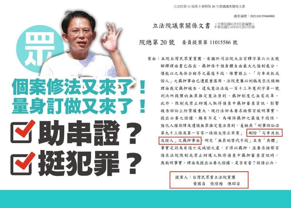 修法禁止檢察官因為嫌犯們「有串供的可能」,要求收押禁見