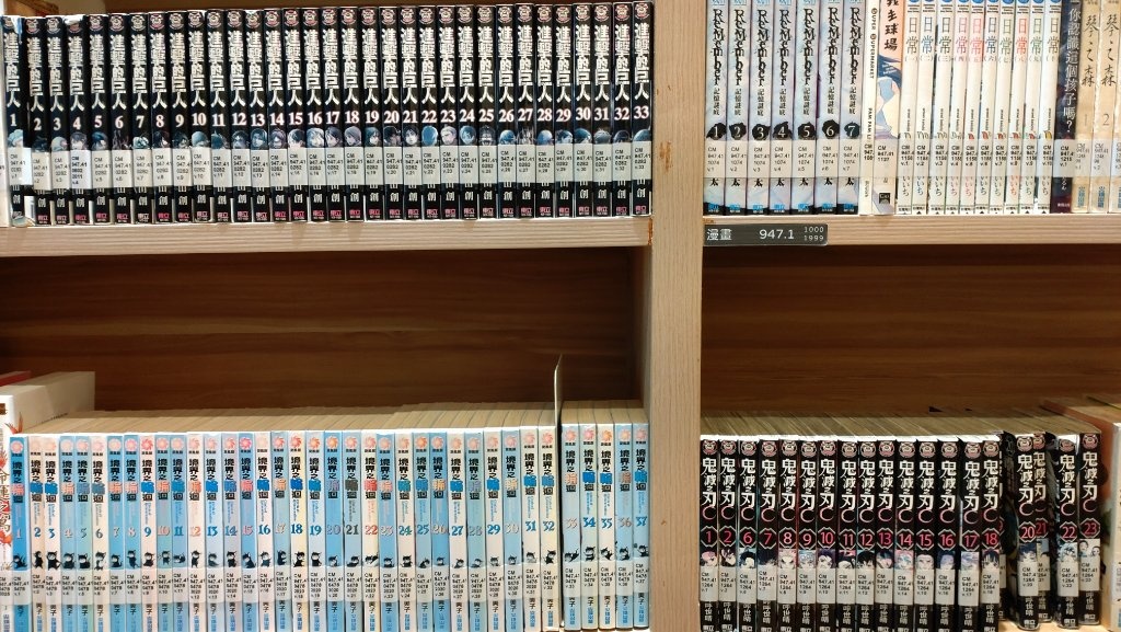 稍早騎車到鎮上的圖書館遛達,現在連我這邊鄉下小農村的圖書館都翻新得亮麗舒適,而且還有專門一層樓放漫畫跟流行向的青少年讀物。看到架上有整套的《旋風管家》、《烏龍派出所》、《進擊的巨人》、《鬼滅之刃》等跨世代的作漫畫。看在我輩阿宅眼裡,真是備感欣慰