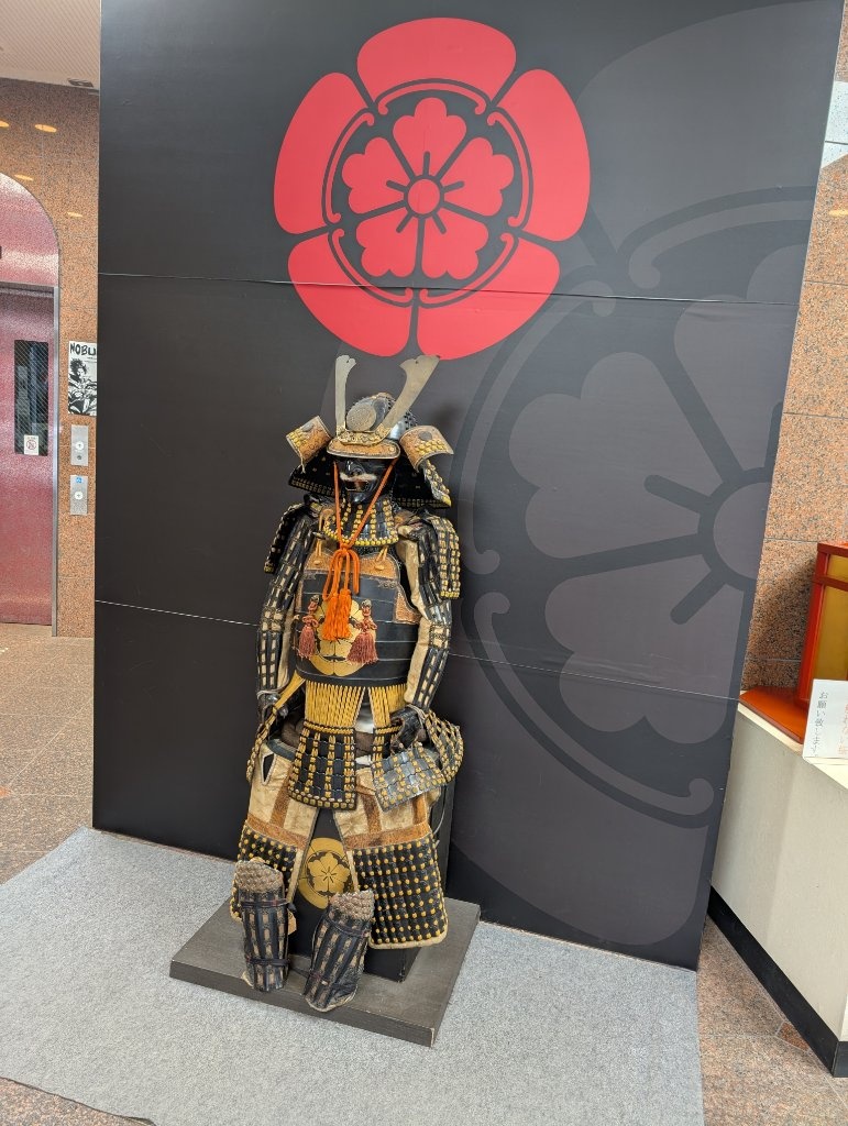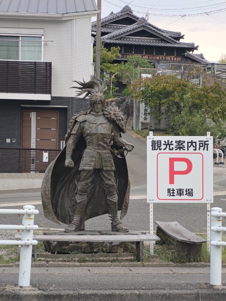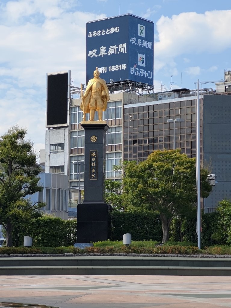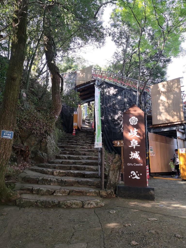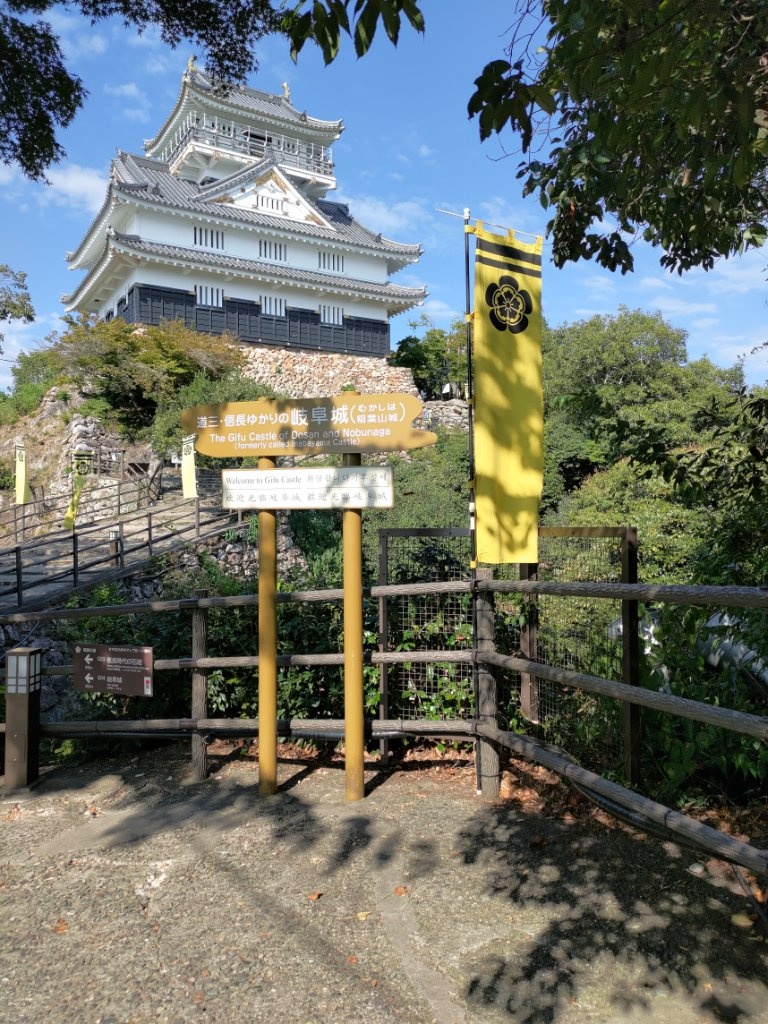然後我們第一次在信長公廟所拍照的時候,遇到了一個和我們搭話的日本人,但我的腦袋無法反應過來對方在說什麼,黑夜給力的接話了
