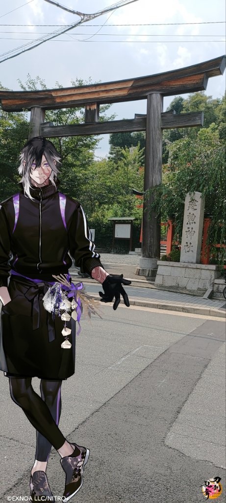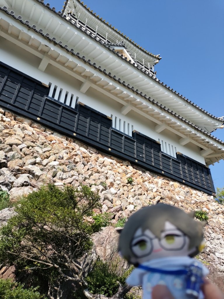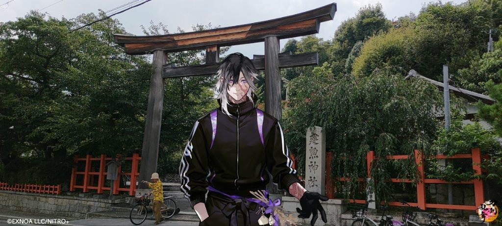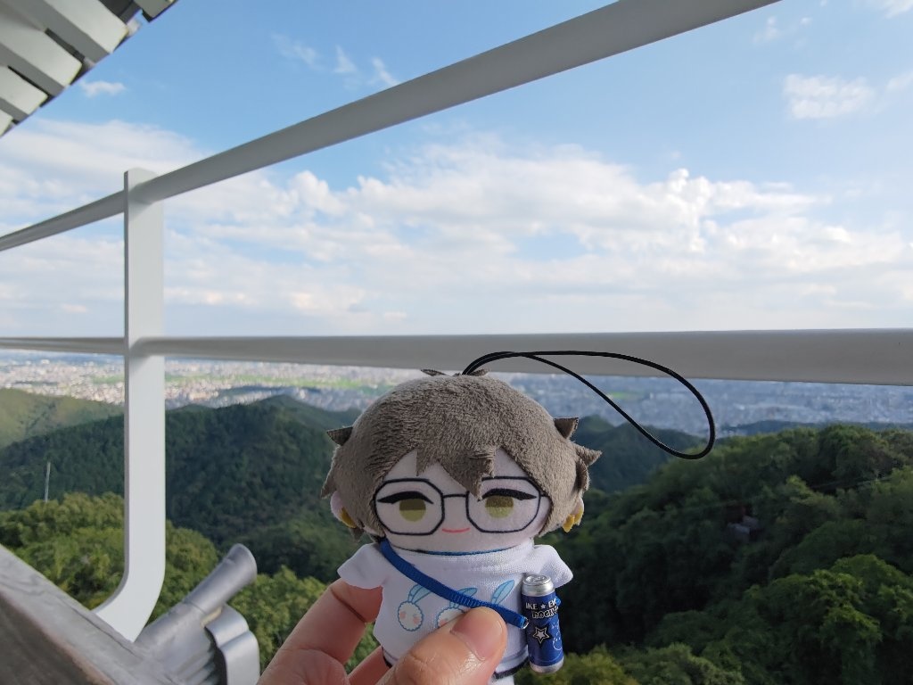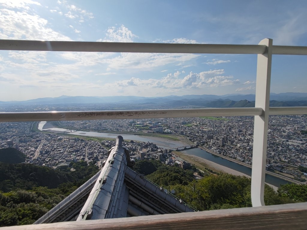 然後我們第一次在信長公廟所拍照的時候,遇到了一個和我們搭話的日本人,但我的腦袋無法反應過來對方在說什麼,黑夜給力的接話了
