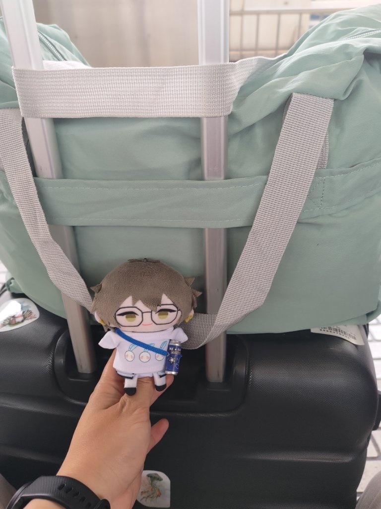 收行李的時候,黑夜輕輕撞到了自己的行李箱