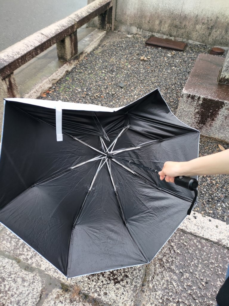 離開旅館時去全家買早餐時,太陽很大,黑夜拿了陽傘出來,但黑夜的陽傘傘骨有兩根快不行了,所以說之後要使用我的雨傘,回到旅館吃早餐後,出門前我把雨傘拿了出來。