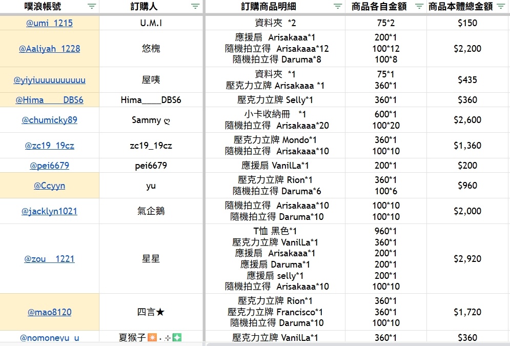 如果需要增減品項、編輯留言都可以先跟我說一聲,請勿自行刪除留言,我會直接黑單