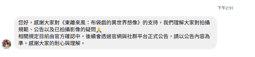 今天有私訊詢問東離官方粉專,包含拍攝規範、公告及已拍攝影像的處理方式。