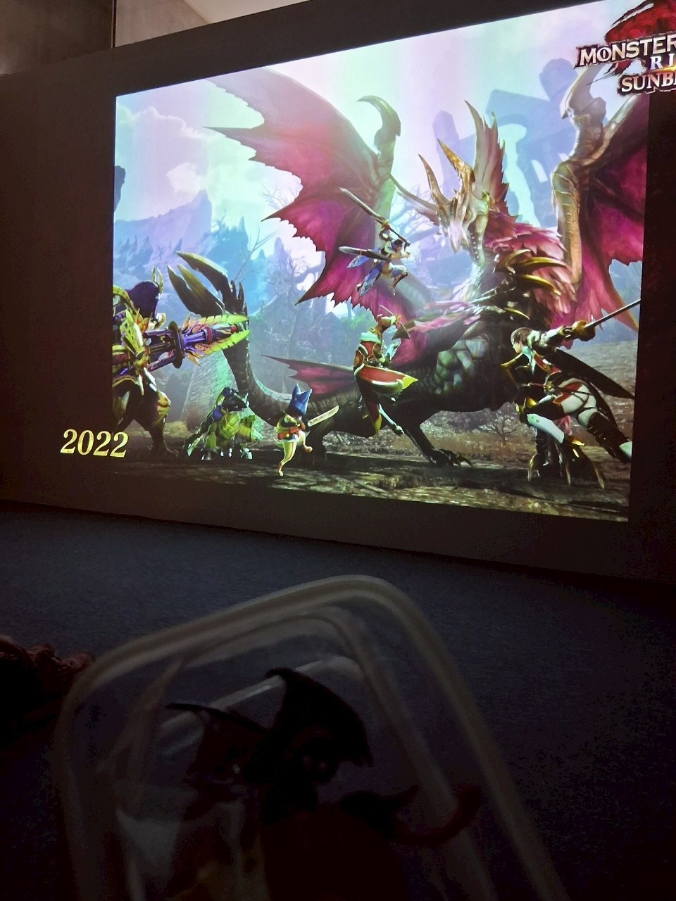 大螢幕動畫播到20週年那邊是獵人跟封面魔物對峙,爵的動作好像在敬禮!你是格林ㄇ
