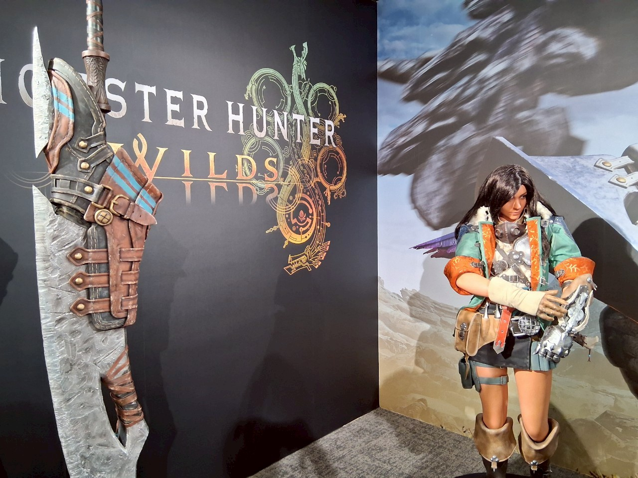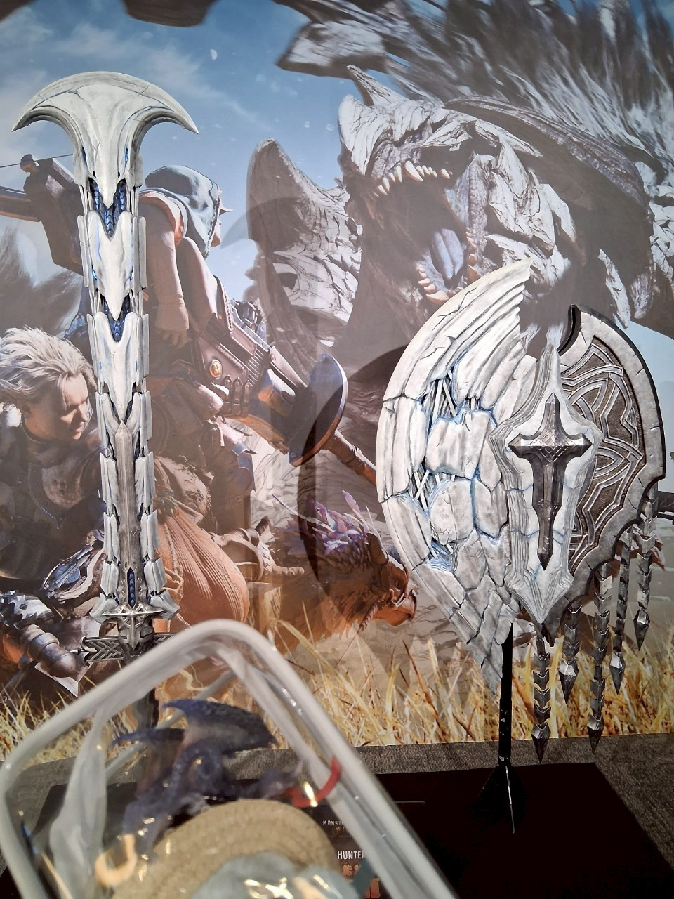 女夯塔雖然說是等身大,但感覺比遊戲裡的還矮很多,跟我差不多高而已。就顯得旁邊的希望大劍大把了一點((拿起這個的獵人果然是人型怪物