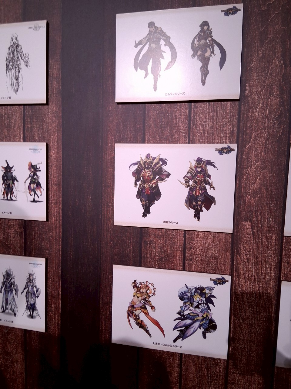 旁邊大螢幕不知道是不是因為展一段時間了,有點觸控不良,每次大概只能點2套出來吧。不過那邊工作人員也不會趕人,有空位就可以一直看,一些舊到在物語也不一定看得到的魔物裝備是滿有趣的,只是每1分鐘就被彈出來真的是有點心累……