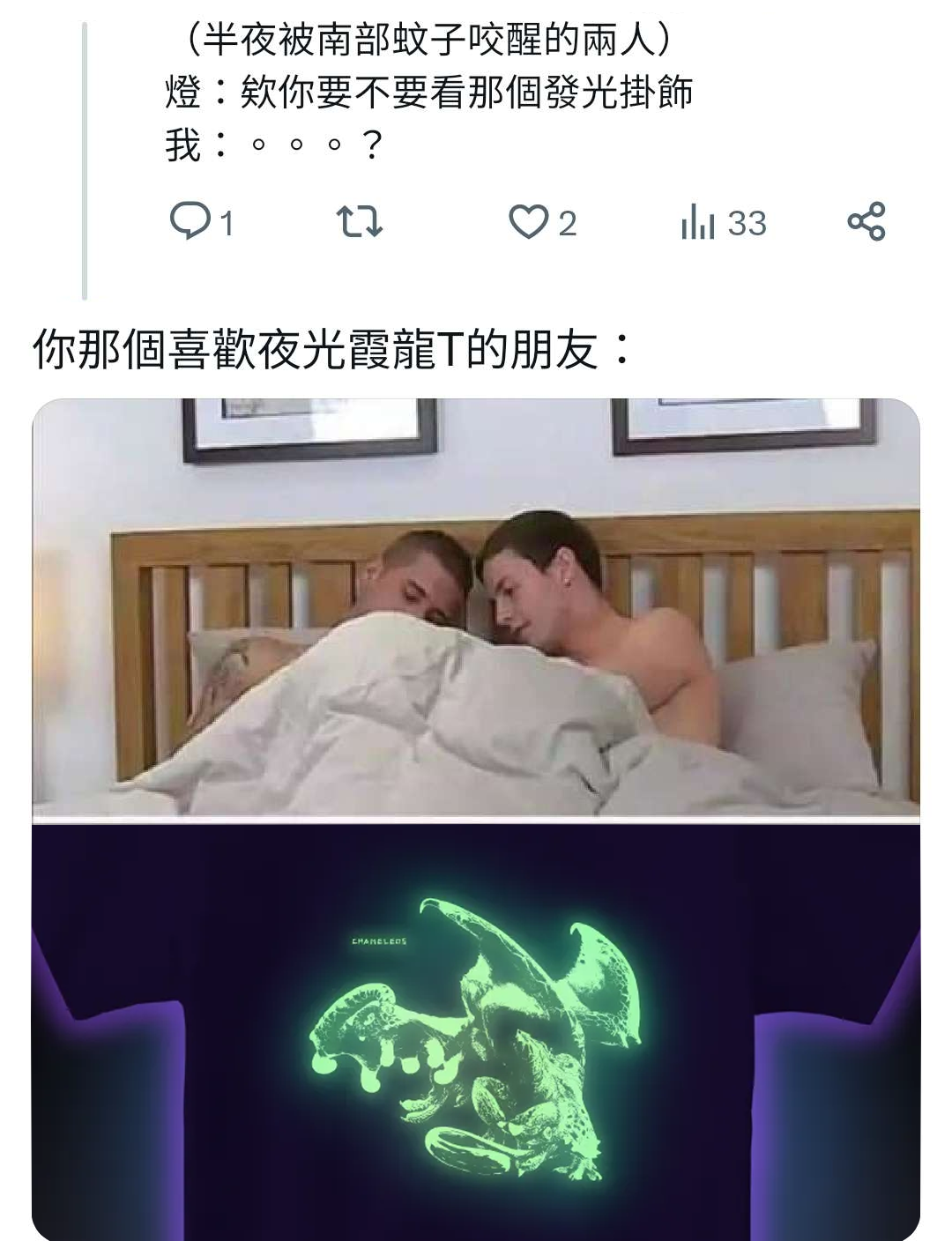 半夜看霞龍T恤發現真的會發光而且還蠻亮的(?)