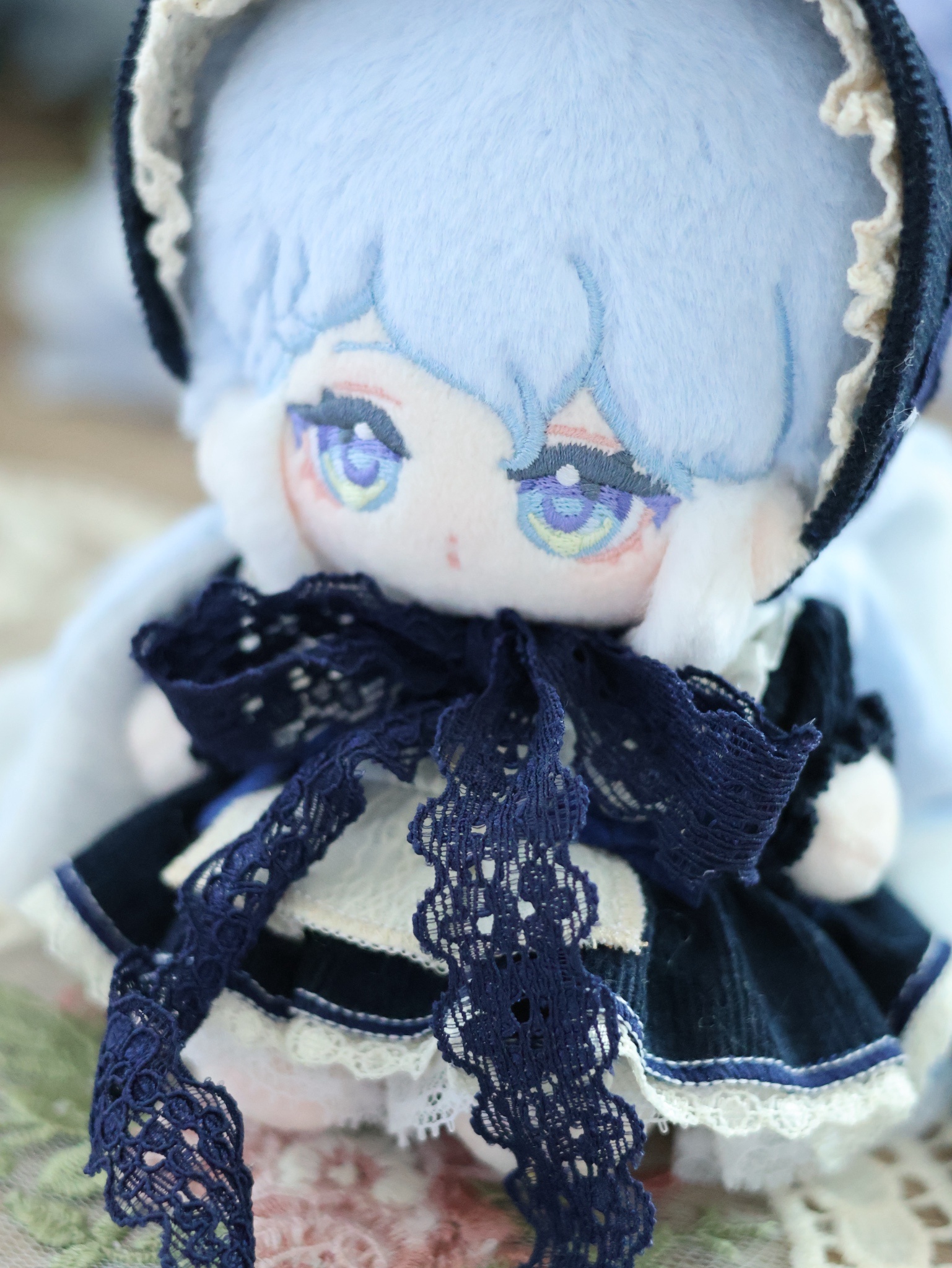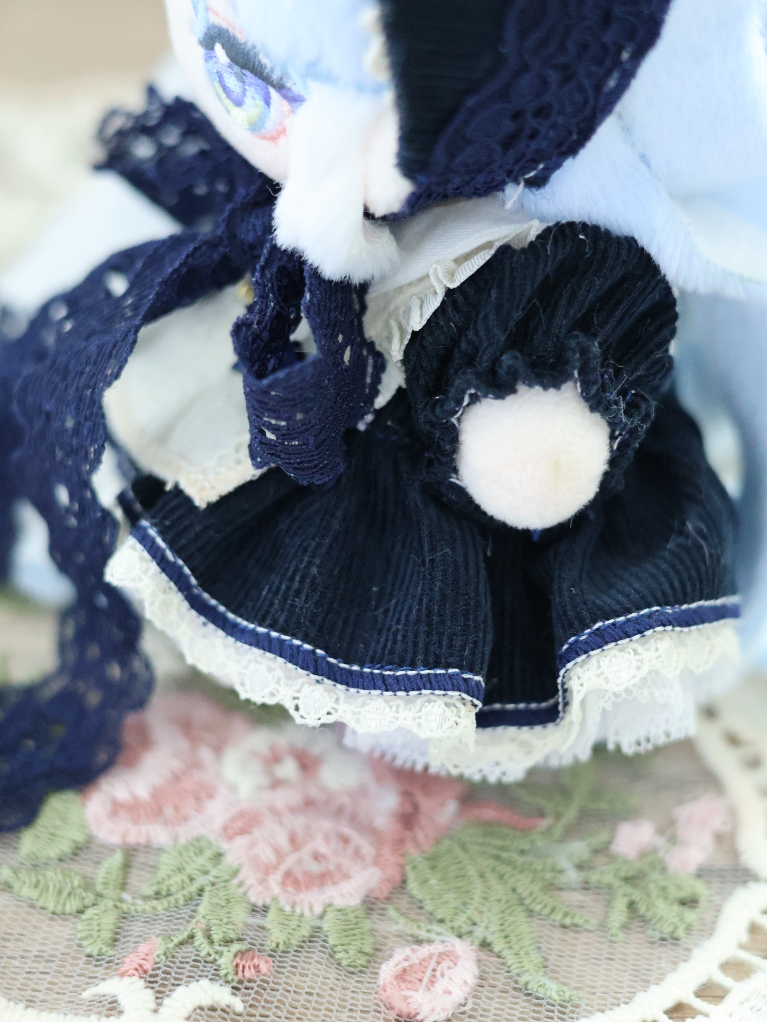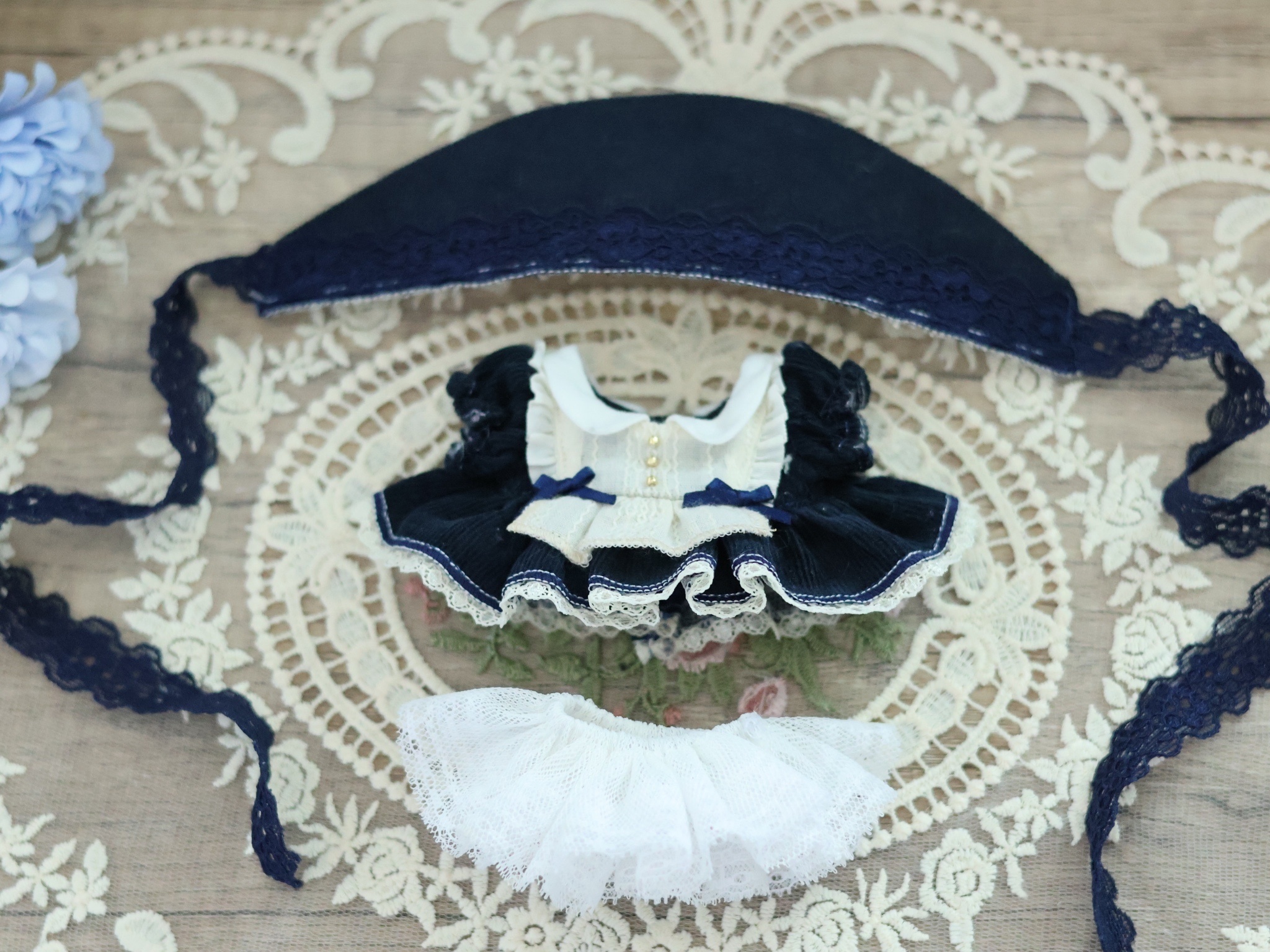 因手作老師習慣與排程因素,本次僅有10cm午夜藍實體樣品可展示,下方會補充紅色與綠色布料實拍提供參考。