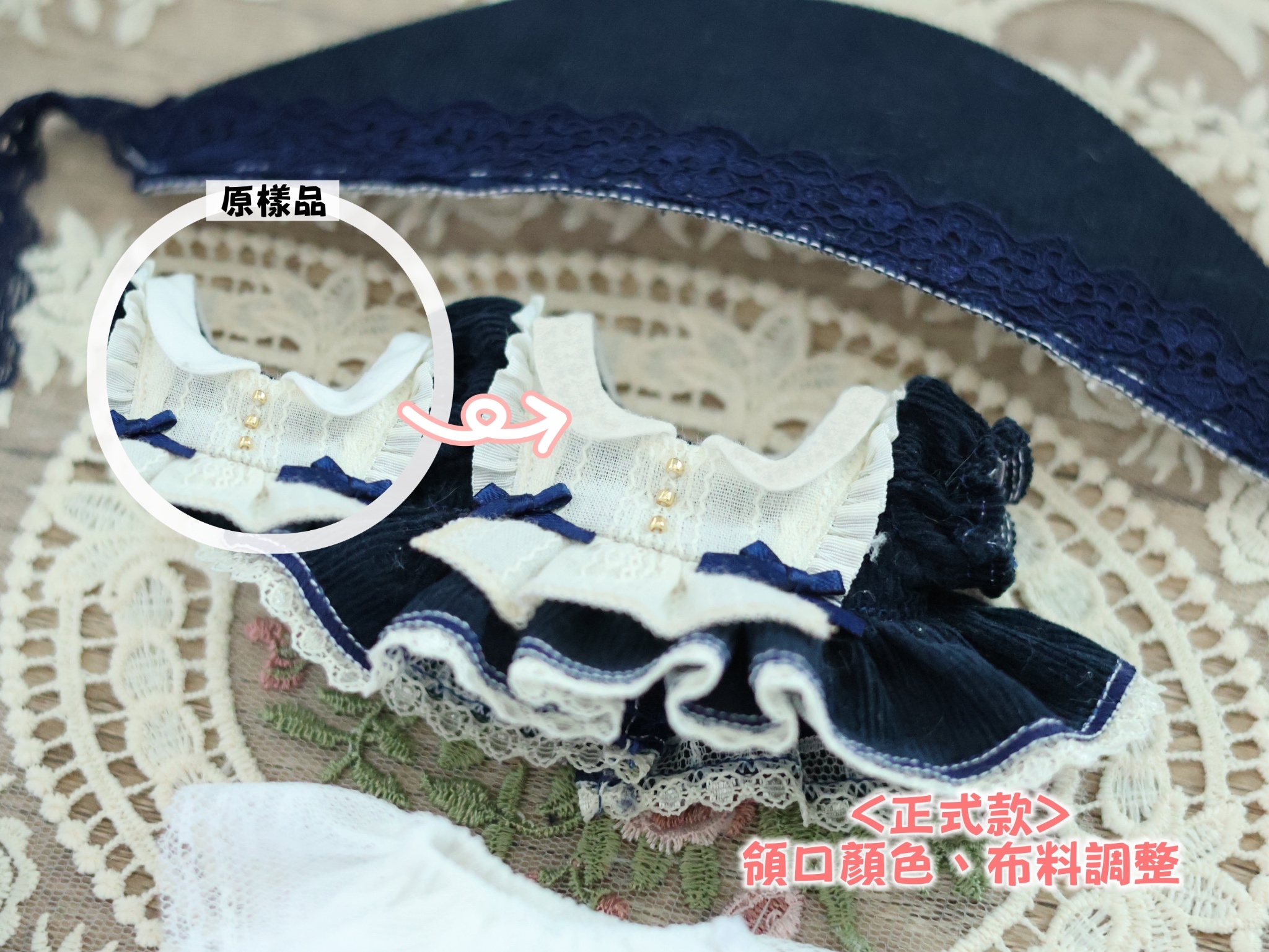 正式版領子會與領口下方布料相同,使整體用色更協調。(照片右方為PS後的示意圖)